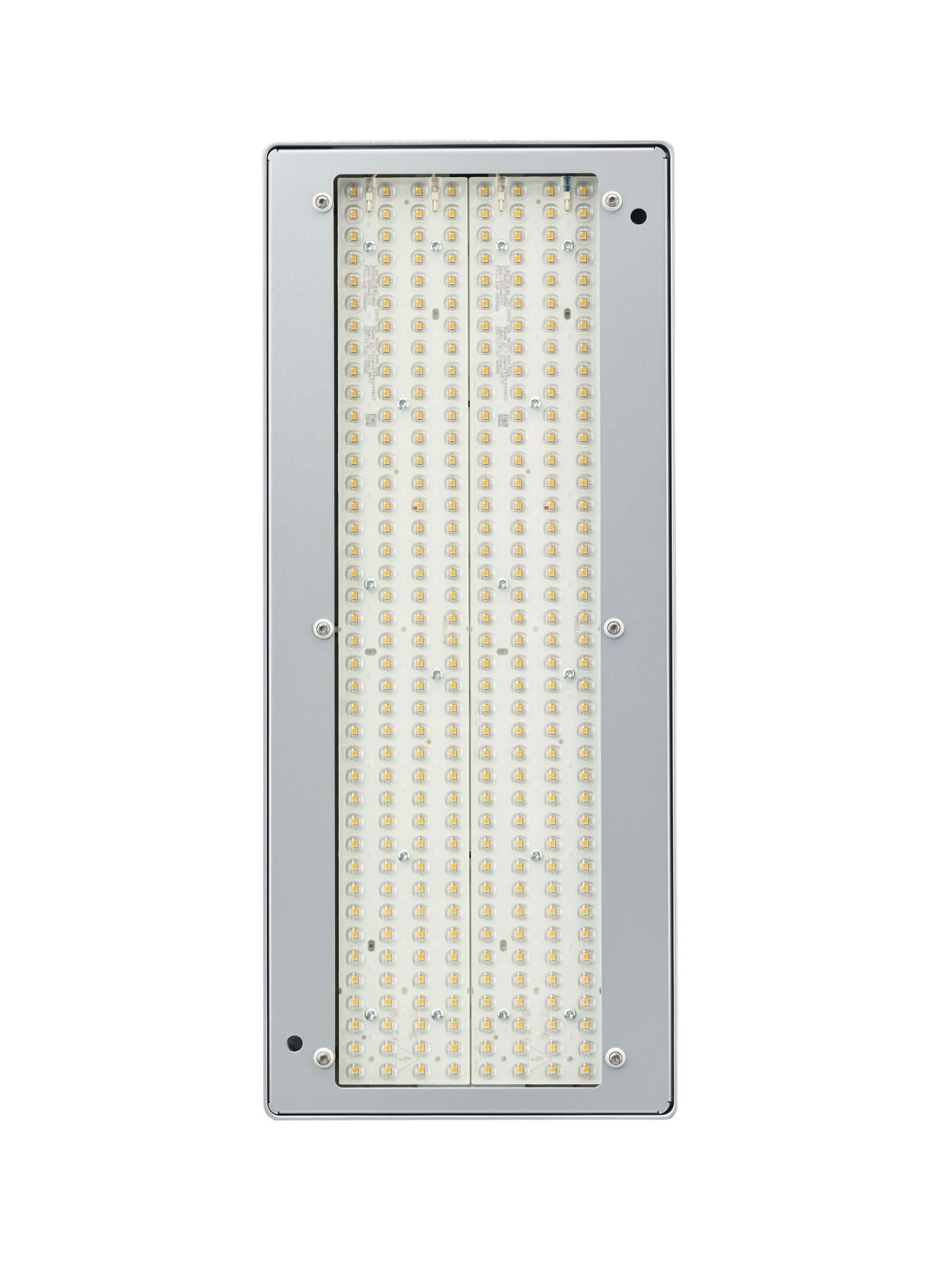 Aluminium, Argent, Poudrage double couche, Jeu de suspension double, triangle, Système Interact Ready de gradation Dali, 17000 lm, 104 W, 164 lm/W, 4000 K, (0.383, 0.377) SDCM 3, Symétrique, Transparent, Polycarbonate, IP65 | Protection contre la pénétration de poussière, protection contre les jets d’eau, IK07 | 2 J renforcé, Classe électrique I, Connecteur enfichable compatible Wieland/Adels 5 pôles