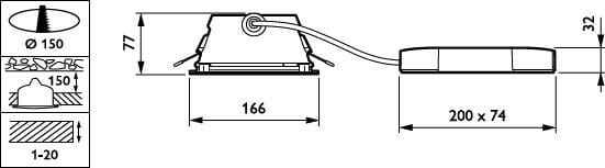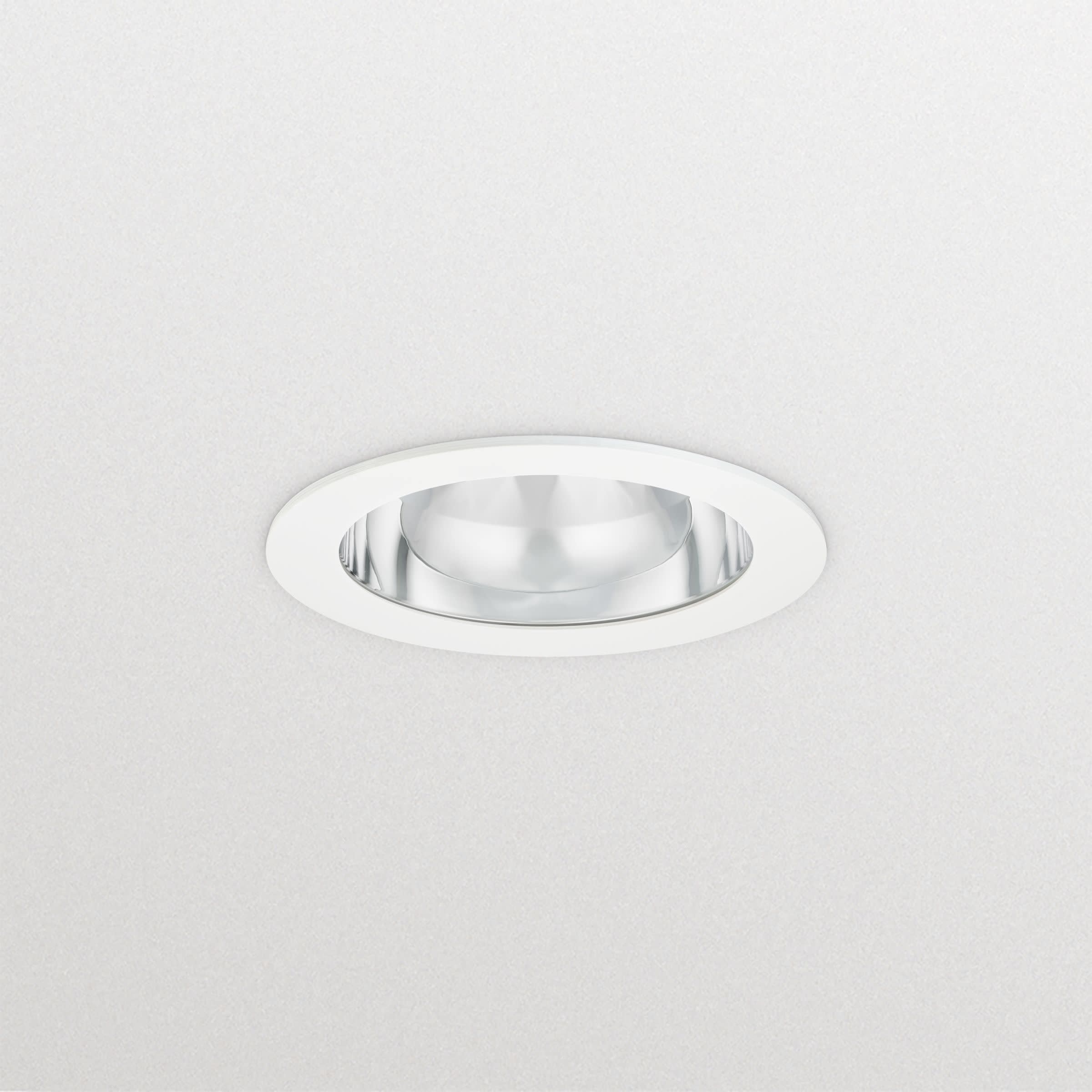 D150 mm, Polycarbonate, Blanc, Blanc de sécurité (RAL9003), Bloc d'alimentation avec interface DALI externe, 1100 lm, 8.2 W, 134 lm/W, 3000 K, (0.43, 0.40) SDCM3, Réflecteur brillant, IP20 | Protection des doigts, IK02 | 0,2 J standard, Classe de sécurité II, Connecteur traversant, 5 pôles