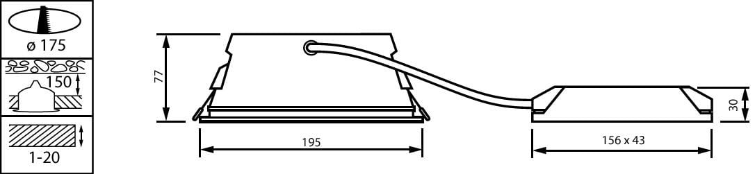 with a perfect fit, D175 mm, Polycarbonate, Blanc, Encastré, Bloc d'alimentation externe (Marche/Arrêt), 1797 lm, 13.3 W, 135 lm/W, 3000 K, (0.43, 0.40) SDCM 3, Angle d’ouverture de faisceau 90°, Réflecteur brillant, IP20 | Protection des doigts, IK02 | 0,2 J standard, Classe de sécurité II, 2 connecteurs à poussoir 2 pôles, Câblage traversant 1 phase
