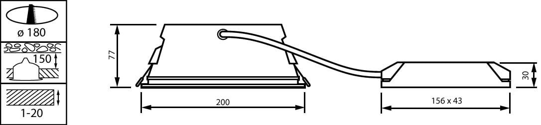 with a perfect fit, D180 mm, Polycarbonate, Blanc, Encastré, Bloc d'alimentation externe (Marche/Arrêt), 1849 lm, 13.3 W, 139 lm/W, 4000 K, (0.38, 0.38) SDCM 3, Angle d’ouverture de faisceau 90°, Réflecteur brillant, IP20 | Protection des doigts, IK02 | 0,2 J standard, Classe de sécurité II, 2 connecteurs à poussoir 2 pôles, Câblage traversant 1 phase