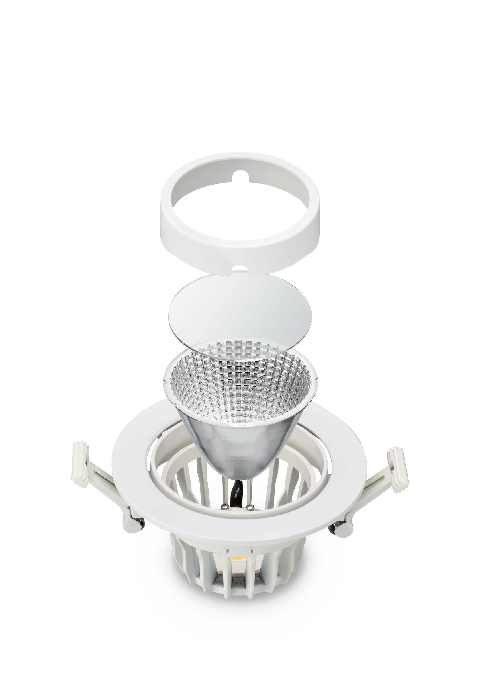 Nous accélérons l’extraordinaire potentiel de la lumière pour des vies plus agréables et un monde meilleur. Avec GreenSpace Accent Cardanic Gen2, les détaillants et les exploitants de bâtiments peuvent profiter de la qualité supérieure de la lumière et de l'efficacité énergétique leader du marché des optiques PerfectAccent dans un downlighter d'accentuation abordable et durable. La maintenance et les mises à niveau du pilote, de la LED et de l'optique sont faciles et ne nécessitent que des outils standards. Pour cette raison, GreenSpace Accent Cardanic Gen2 peut prendre en charge une installation d'éclairage circulaire. La structure Cardanic du luminaire facilite l'orientation de la lumière. En plus des options de gradation, plusieurs options d'intégration de système sont disponibles, y compris filaire et sans fil. Des recettes d'éclairage LED pour aliments frais sont disponibles pour prolonger la durée de conservation, améliorer la représentation visuelle des aliments, réduire le gaspillage alimentaire et augmenter les ventes. Consultez nos pages de catalogue Mode et Alimentation pour en savoir plus sur nos recettes PremiumWhite, PremiumColor, Viande fraîche, Rosé, Froid et Champagne.