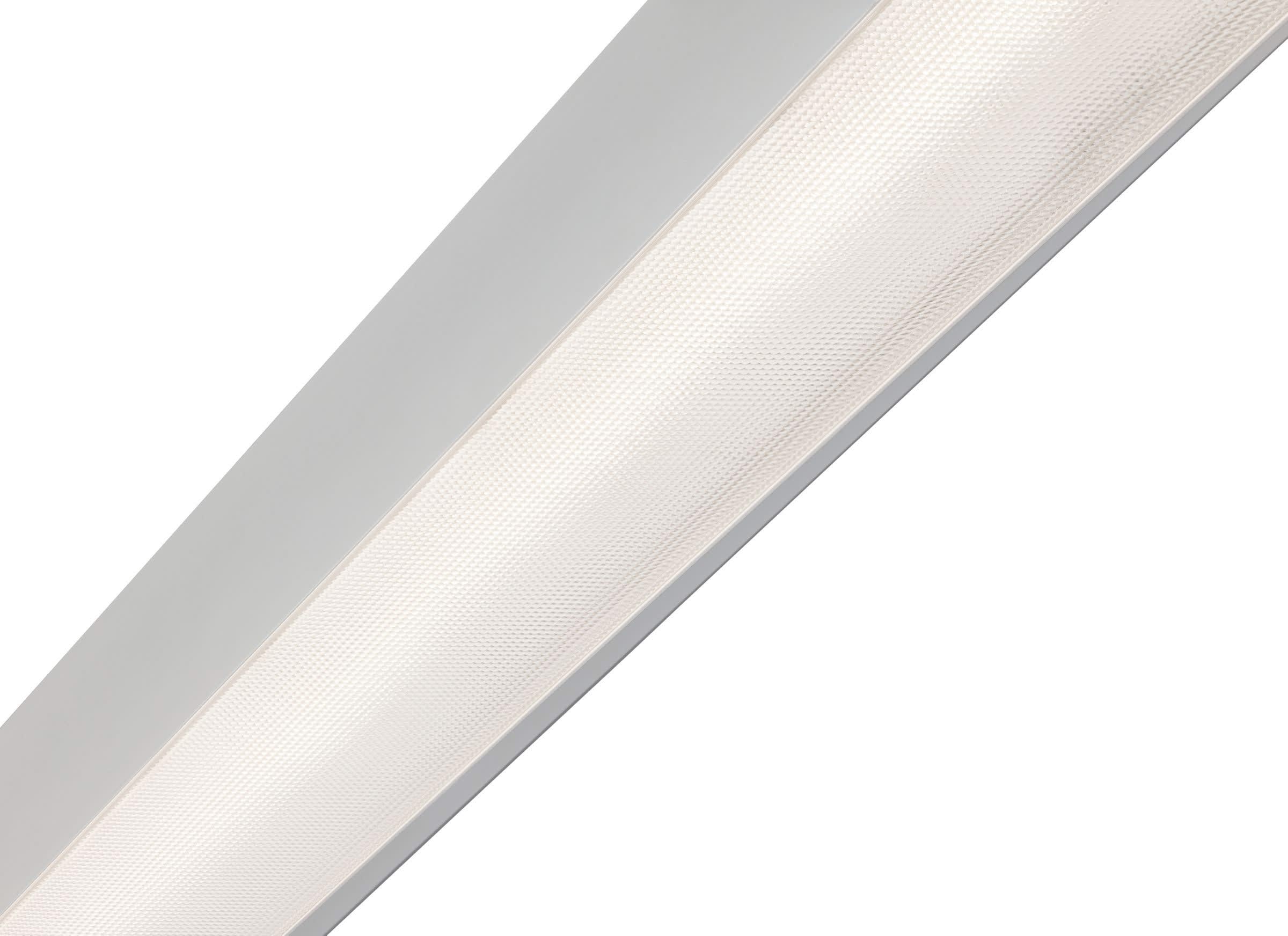 L1200 mm; H70 mm, Aluminium, Blanc, Blanc de sécurité (RAL9003), Bloc d'alimentation avec interface DALI, 2900 lm, 21 W, 138 lm/W, 4000 K, (0.39, 0.38) SDCM 3, UGR19, Faisceau semi-intensif, Texturé, Polycarbonate, IP20 | Protection des doigts, IK06 | 1 J, Classe électrique I, Connecteur à poussoir 5 pôles