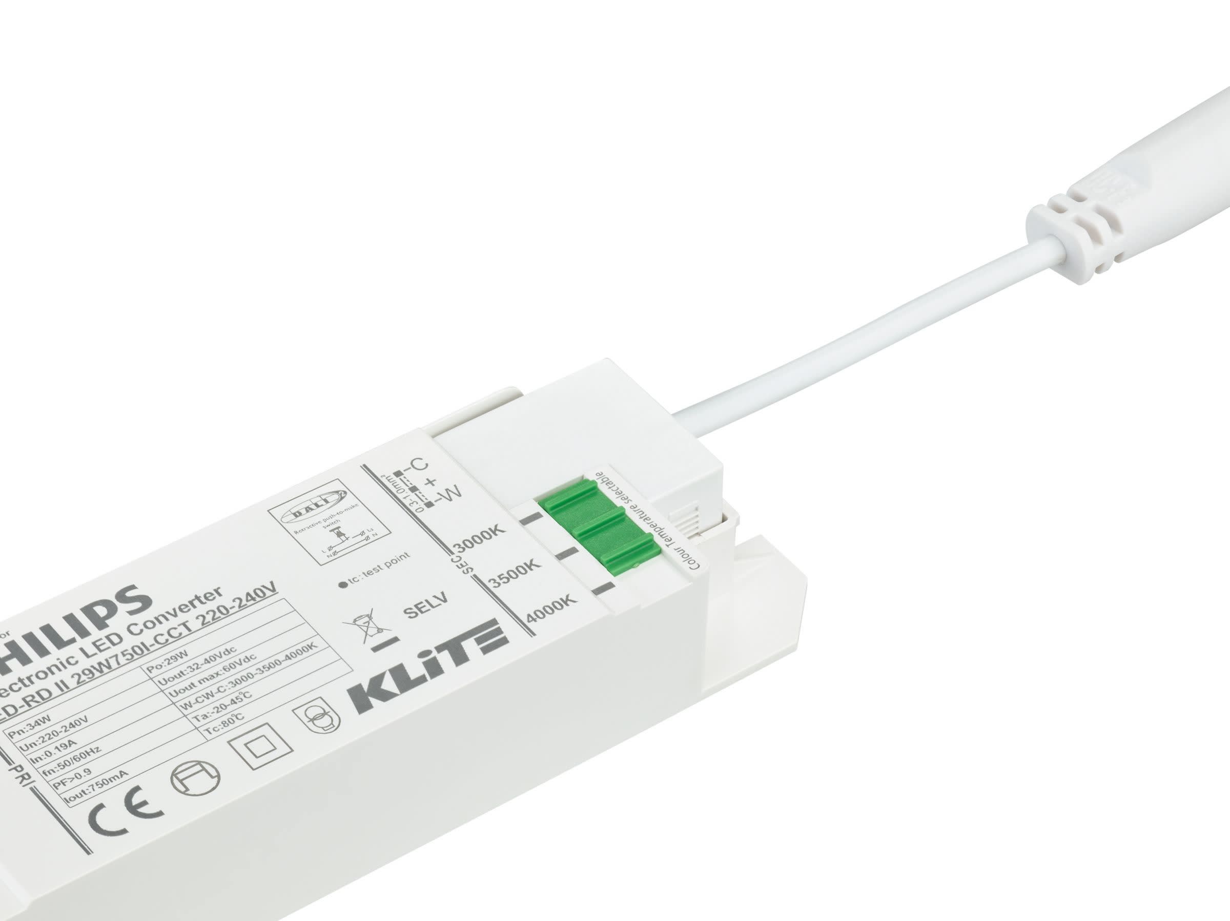 600x600 mm, Visible profile ceiling version, Acier, Blanc, Blanc de sécurité (RAL9003), Bloc d'alimentation externe (Marche/Arrêt), All-in, Multi Color Temperature, 3400 lm, 3600 lm, 28 W, 120 lm/W, 3000 K, 4000 K, (0.43, 0.40) SDCM ≤5(0.38, 0.38) SDCM ≤5, UGR19, Angle d’ouverture de faisceau 90°, Lentille microprismatique, Acrylate, IP20/40 | Protection des doigts ; protection des fils, IK02 | 0,2 J standard, Classe de sécurité II, Connecteur à poussoir 2 pôles, SC | Câble de sécurité
