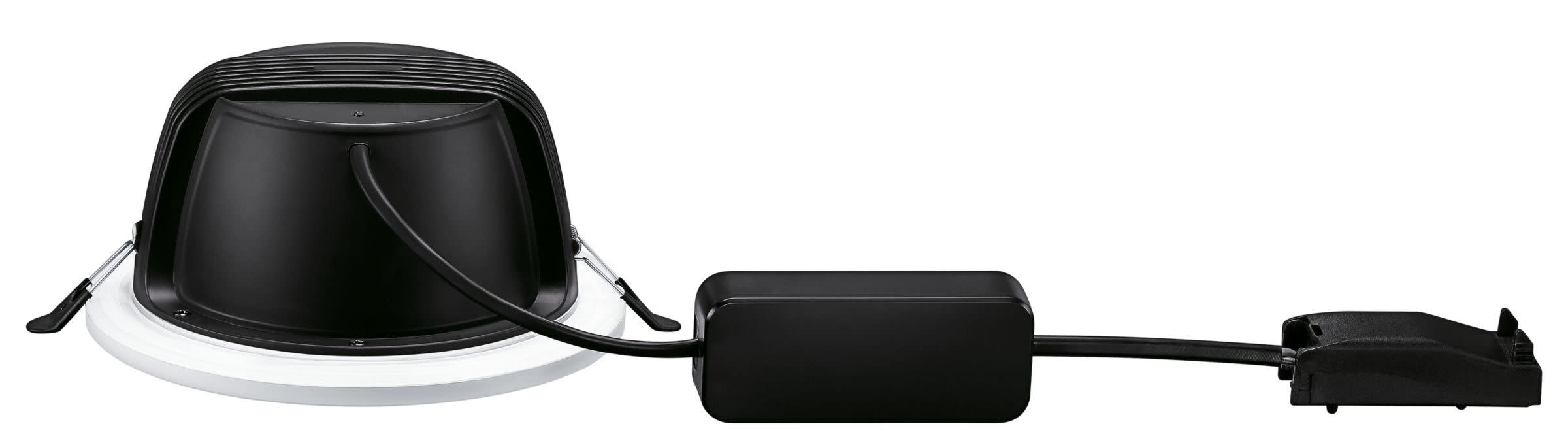 D150 mm, Métal-Plastique, Noir, Bloc d’alimentation électrique (Marche/Arrêt), 1200 lm, 12 W, 96.00 lm/W, 4000 K, (0.3795, 0.3827) 5SDCM, Angle d’ouverture de faisceau 60°, Mat, Polycarbonate, IP20/54 | Protection des doigts ; protection contre l’accumulation de poussière, protection contre les éclaboussures, IK03 | 0,3 J, Classe de sécurité II, Unité de connexion 2 pôles