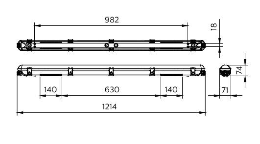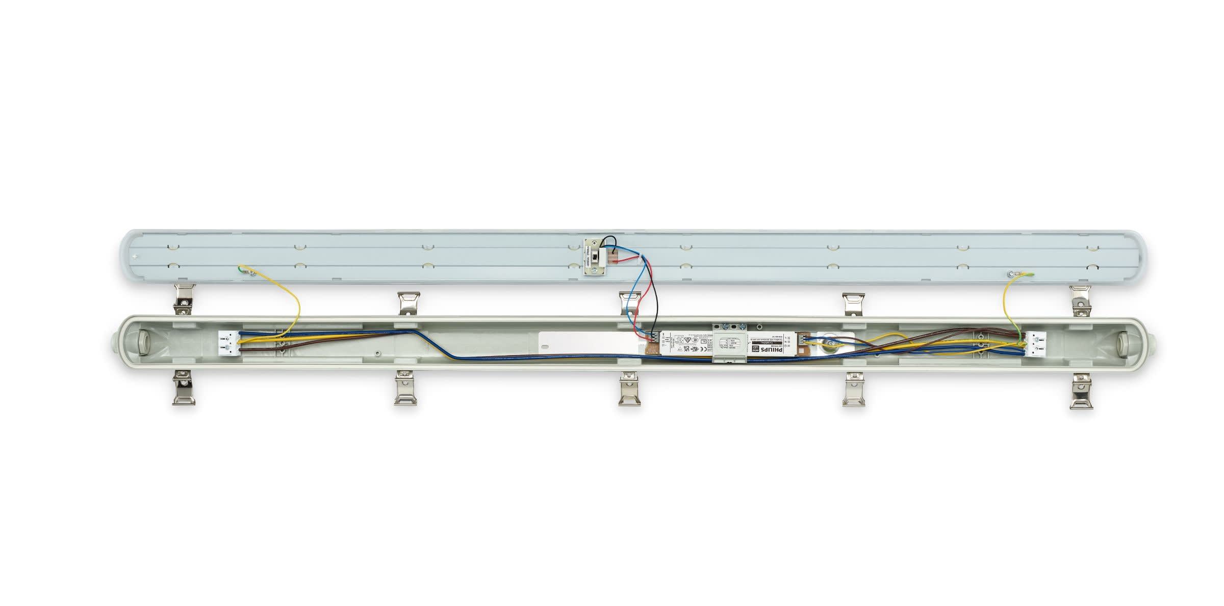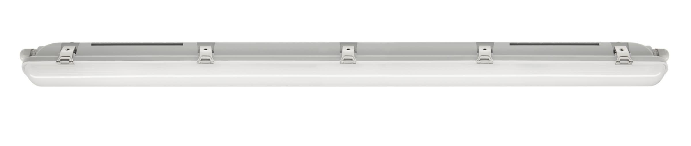 L1200 mm, Polycarbonate, Gris, Bloc d’alimentation électrique (Marche/Arrêt), All-in, Multi Lumen, 2900 lm, 4800 lm, 42 W, 23 W, 126 lm/W, 114 lm/W, 4000 K, (0.38,0.38) SDCM≤5, Symétrique, Opale, Polycarbonate, IP65 | Protection contre la pénétration de poussière, protection contre les jets d’eau, IK08 | 5 J protection contre le vandalisme, Classe électrique I, Connecteur à poussoir 3 pôles, Câblage traversant 1 phase