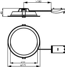D150 mm, Métal-Plastique, Blanc, Bloc d’alimentation électrique (Marche/Arrêt), All-in, Multi Color Temperature, 1200 lm, 12 W, 100 lm/W, 3000 K, 4000 K, 6500 K, (0.44, 0.403) SDCM≤5, Angle d’ouverture de faisceau 110°, IP20/44 | Protection des doigts, protection des fils, protection contre les éclaboussures, IK03 | 0,3 J, Classe de sécurité II, Bornier de raccordement à vis 2 pôles