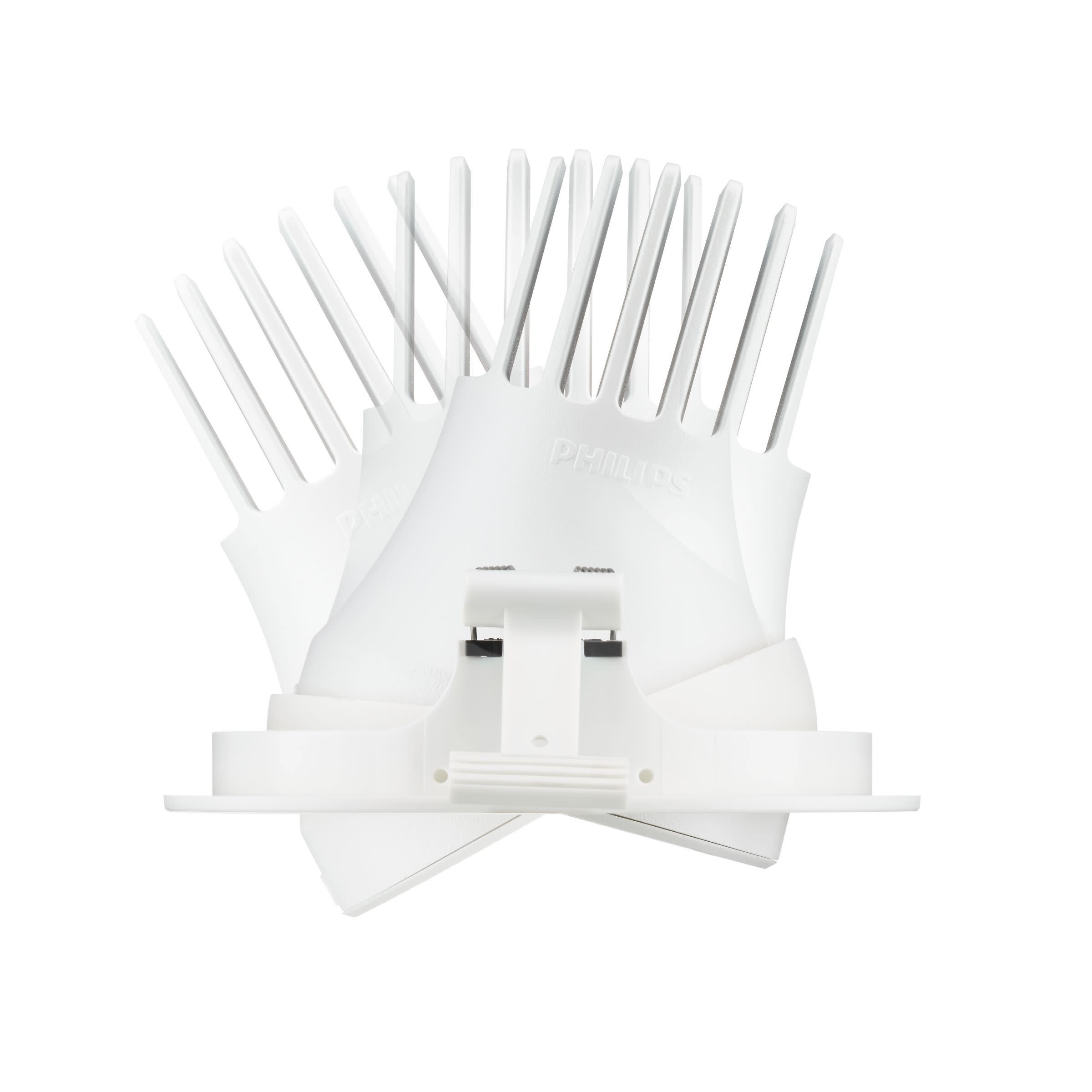 D125 mm, Aluminium, Blanc, Blanc de sécurité (RAL9003), Bloc d'alimentation externe (Marche/Arrêt), 1950 lm, 14 W, 128 lm/W, 3000 K, (0.434,0.403)2, CRI90, Réflecteur métallique haute réflexion - faisceau extensif 40 à 80°, Réflecteur PerfectAccent haute efficacité, IP20 | Protection des doigts, IK02 | 0,2 J standard, Classe de sécurité II, 2 connecteurs à poussoir 2 pôles