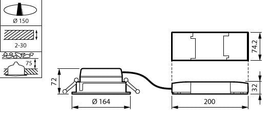 D150 mm, Fonte d’aluminium, Blanc, Blanc de sécurité (RAL9003), Système Interact Ready de gradation Dali, compatible communication par la lumière visible pour éclairage externe, 1350 lm, 10.6 W, 127 lm/W, 3000 K, (0.43, 0.40) SDCM 2, Réflecteur brillant, Polycarbonate, IP20 | Protection des doigts, IK02 | 0,2 J standard, Classe de sécurité II, Connecteur à poussoir et soulagement de traction