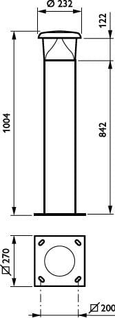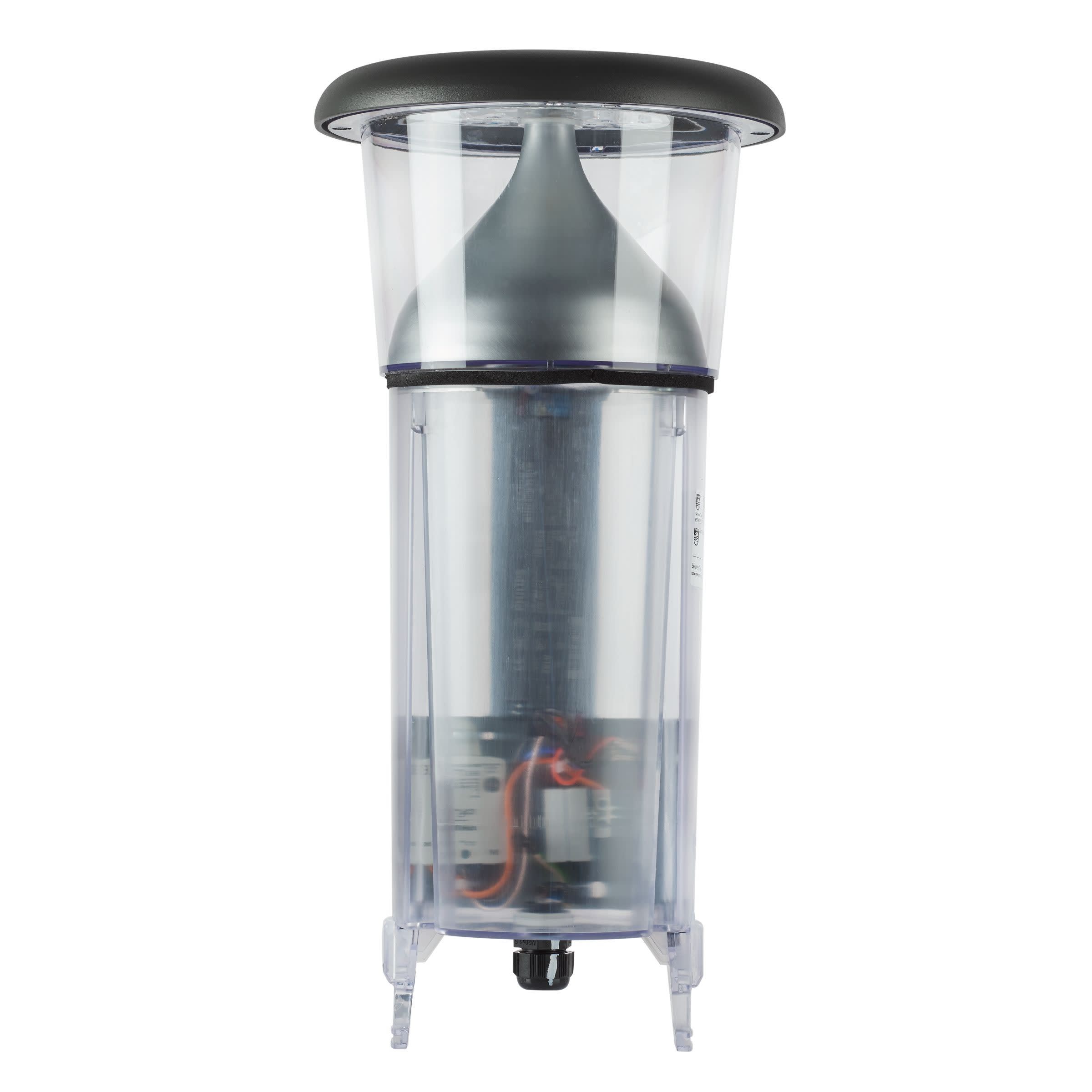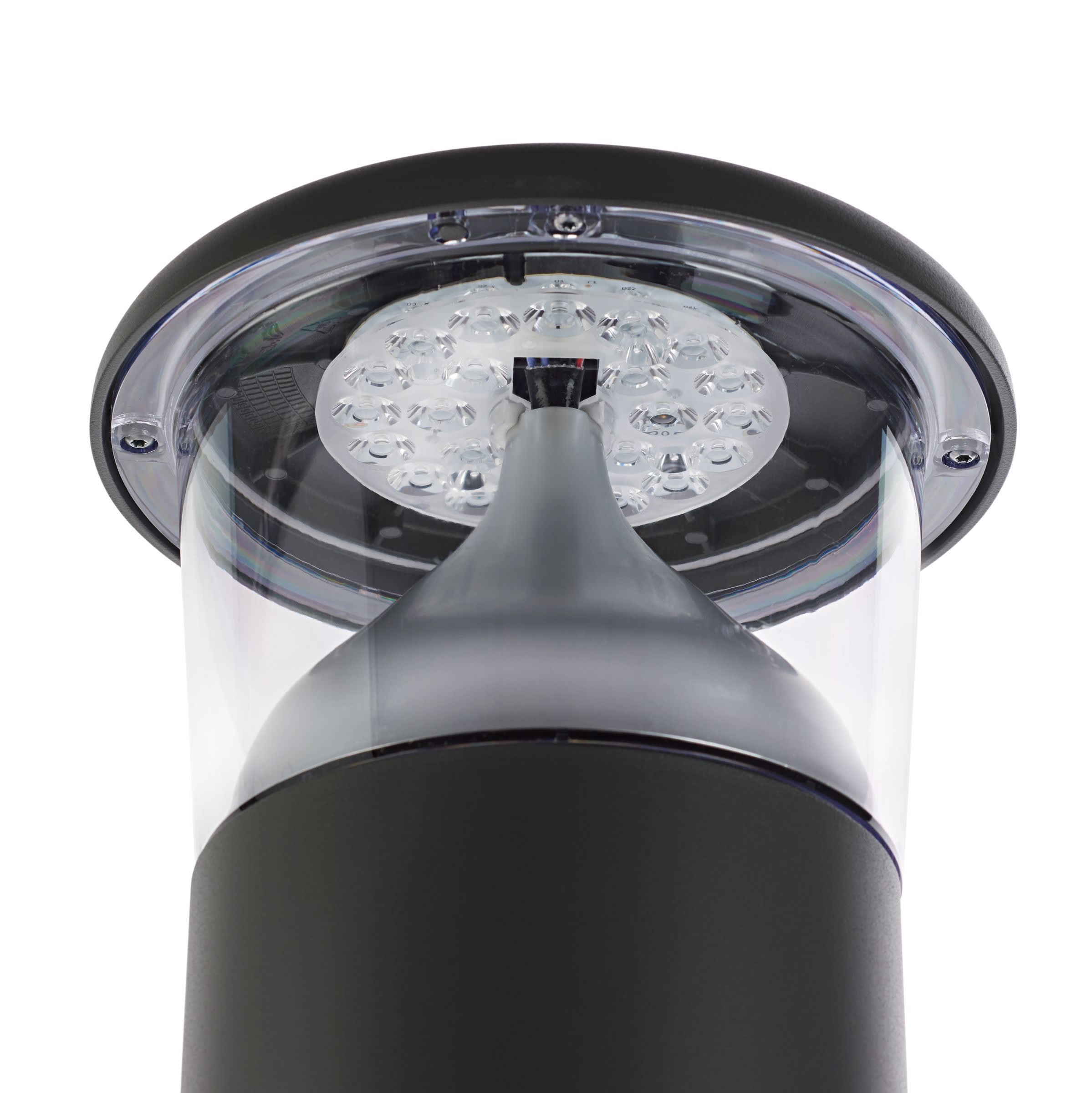 Bollard, H848 mm, Fonte d’aluminium, Noir, Universel pour diamètre 42 à 60 mm réglable, Bloc d’alimentation électrique (Marche/Arrêt), 4900 lm, 37.2 W, 173 lm/W, 4000 K, (0,3818; 0,3796) SDCM 3, CRI70, Symétrique, IP66 | Protection contre la pénétration de poussière, protection contre les jets d’eau, IK10 | 20 J résistance au vandalisme, Classe de sécurité II, Protection contre les surtensions en mode différentiel jusque 6 kV et en mode commun jusque 6 kV, Câble 1,5 m sans prise, Fils/câbles volants
