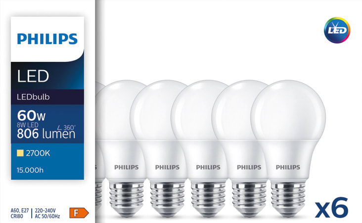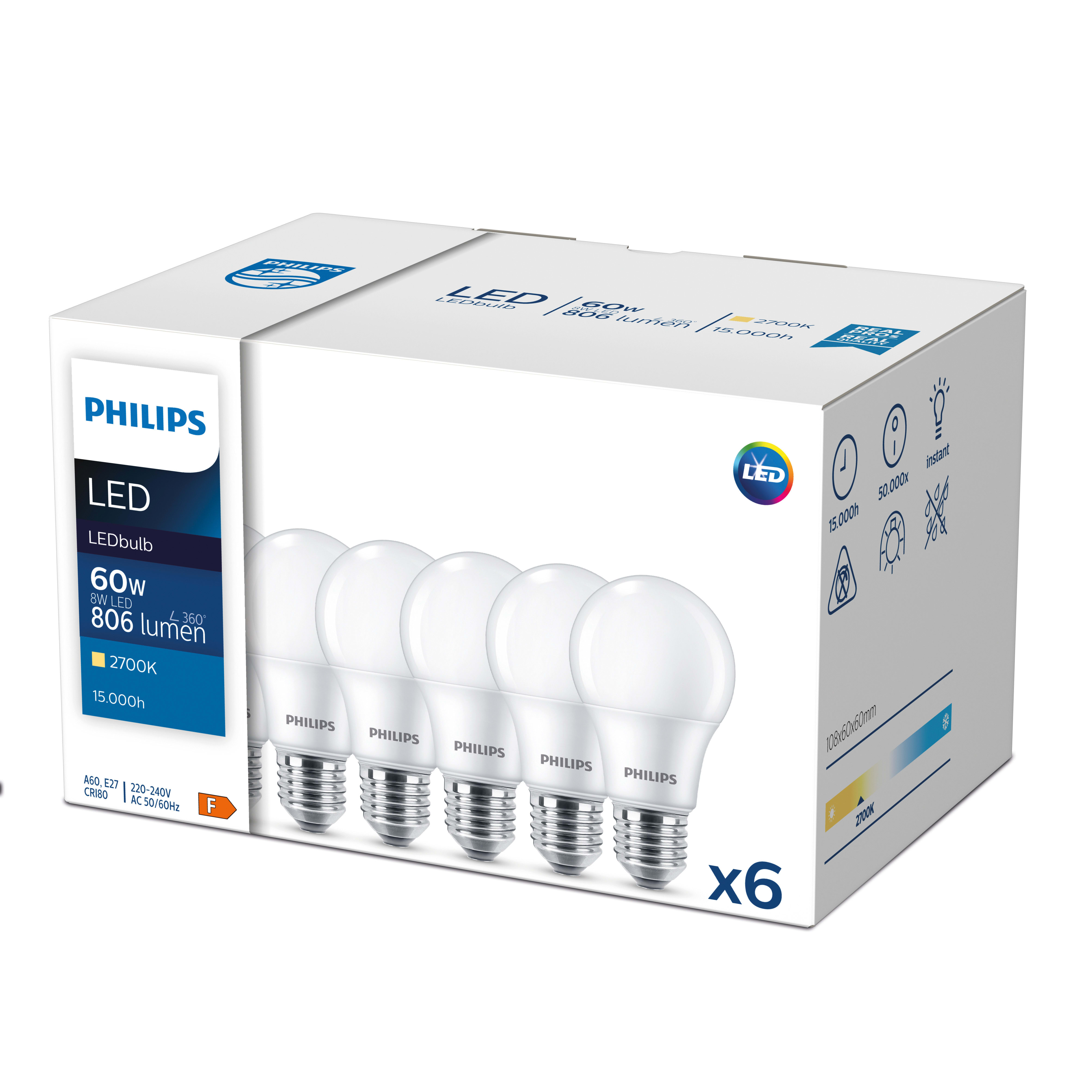 Philips - Pack 6 CorePro lampe LED Bulb E27 8-60W 827 806lm 15000h - 420670