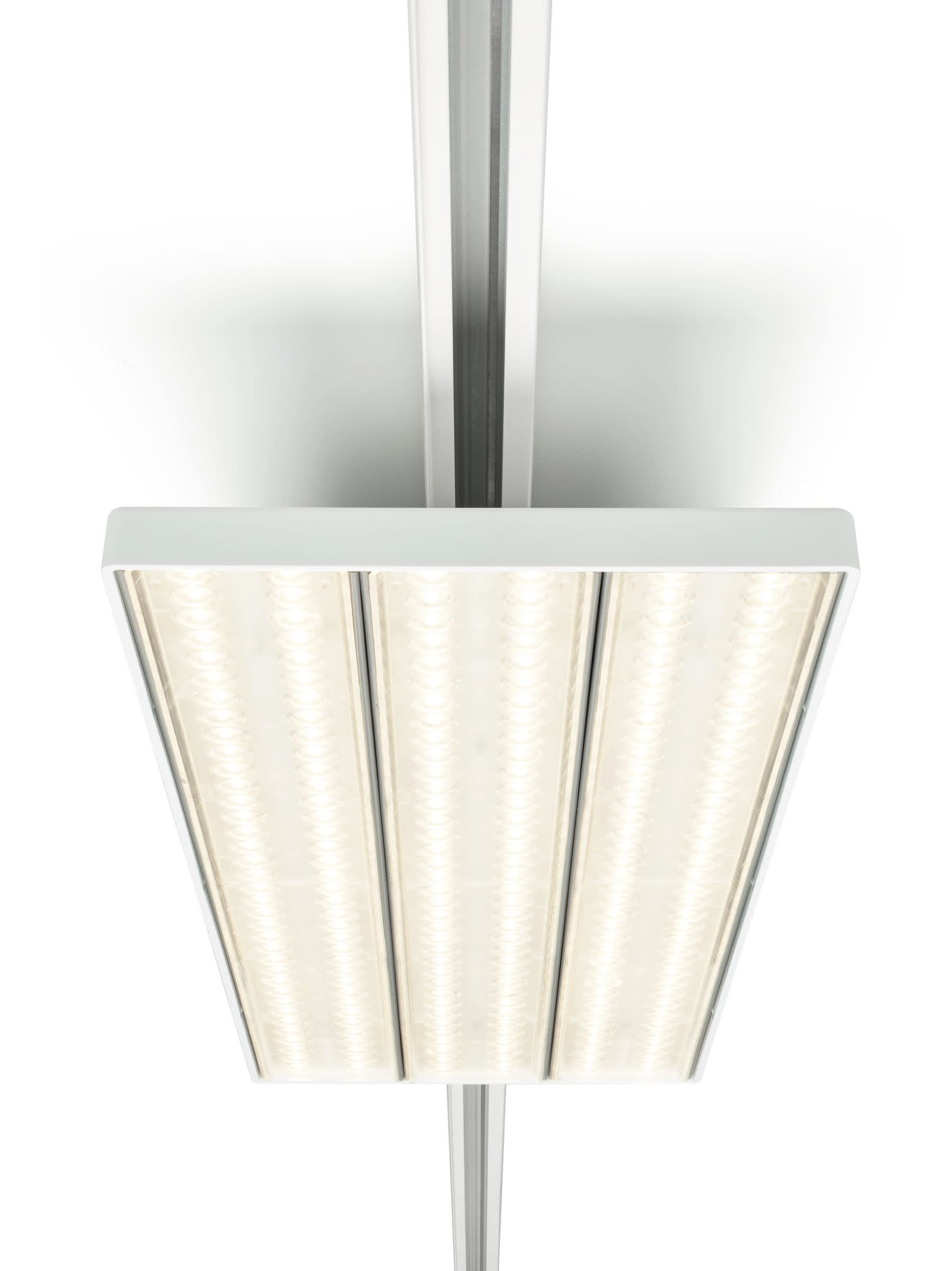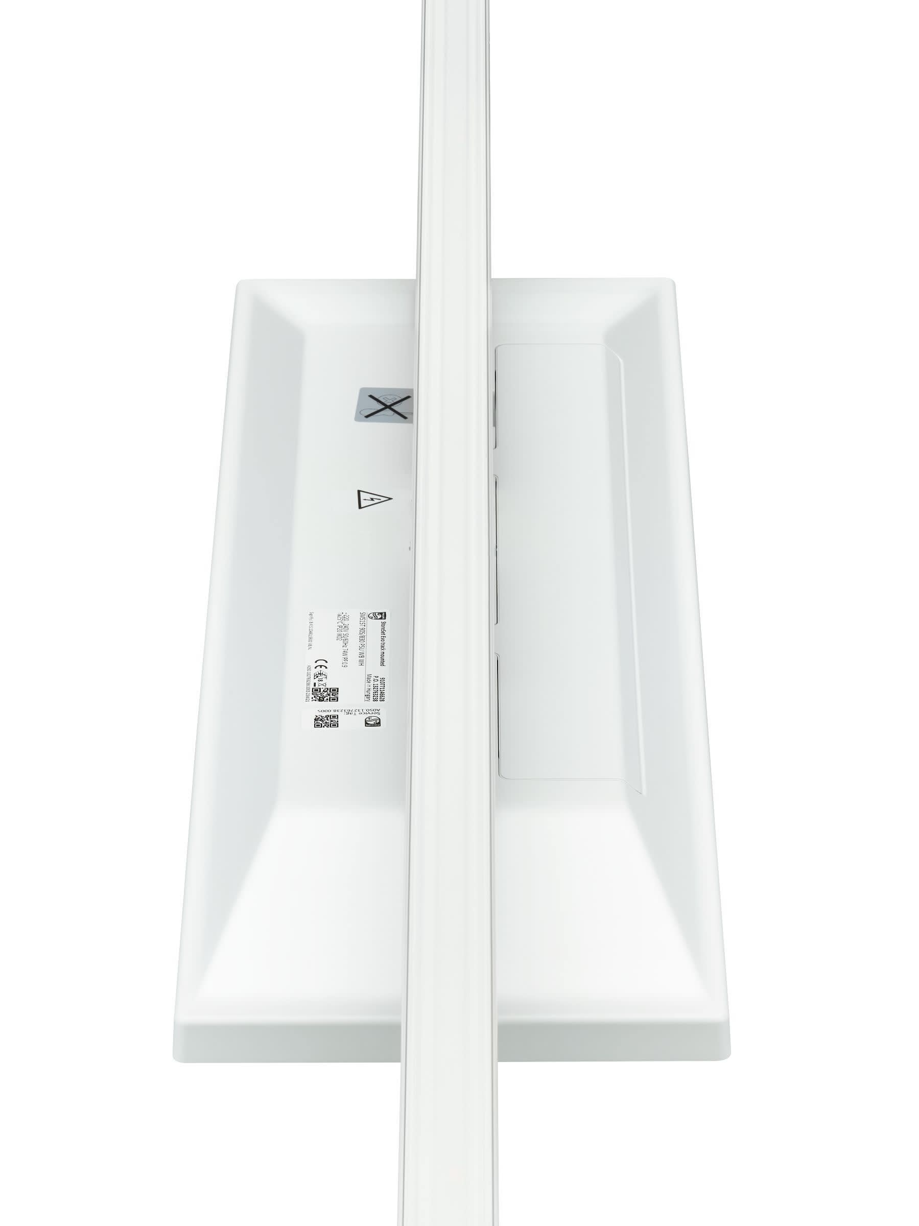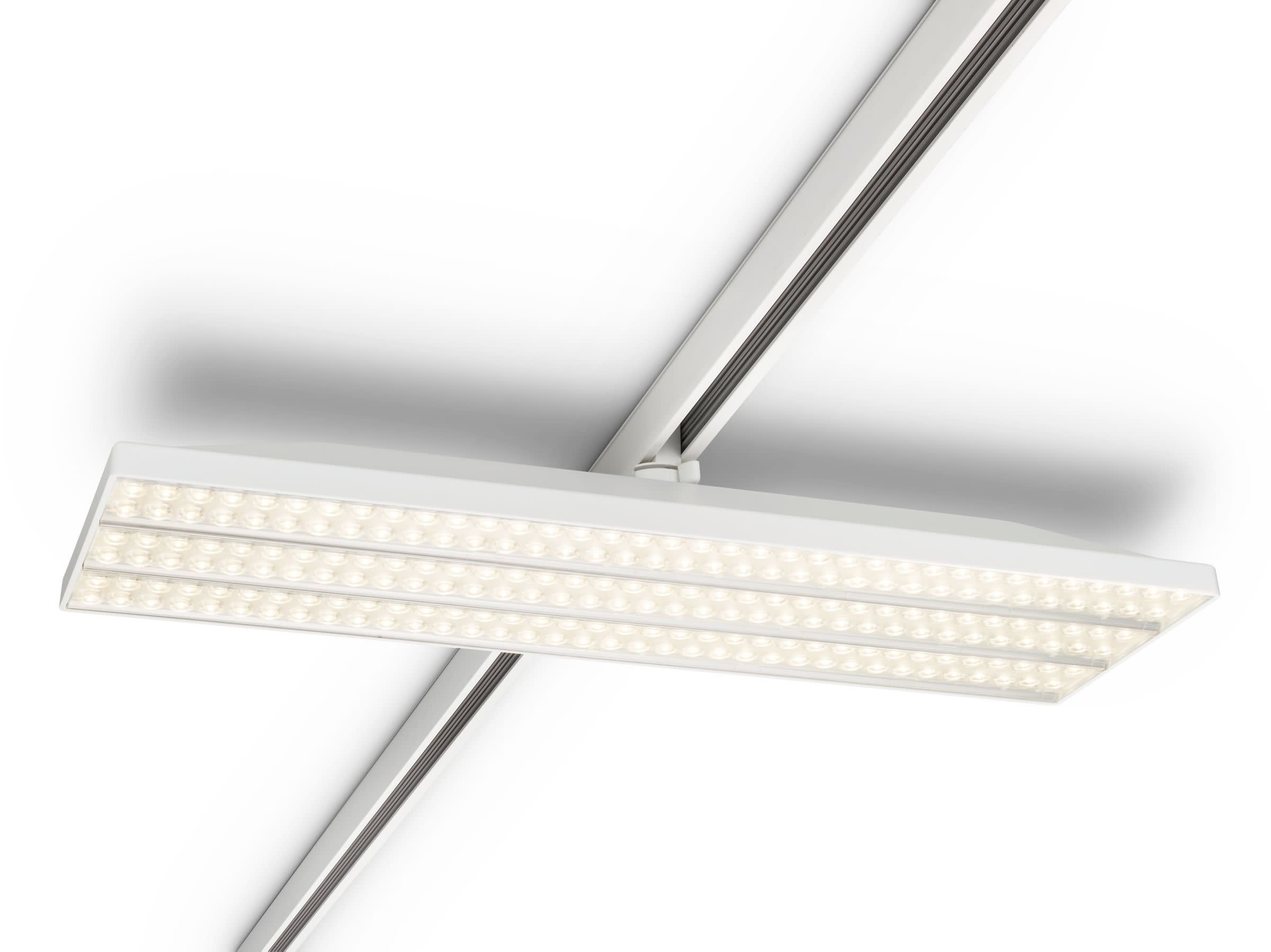 575x196 mm, Plastique, Blanc, Bloc d’alimentation électrique (Marche/Arrêt), 6400 lm, 50 W, 128 lm/W, 3000 K, (0.43, 0.40) SDCM3, Miroir asymétrique, inclinaison de l'axe de 20°, Transparent, Polycarbonate, IP20 | Protection des doigts, IK02 | 0,2 J standard, Classe électrique I, Rail