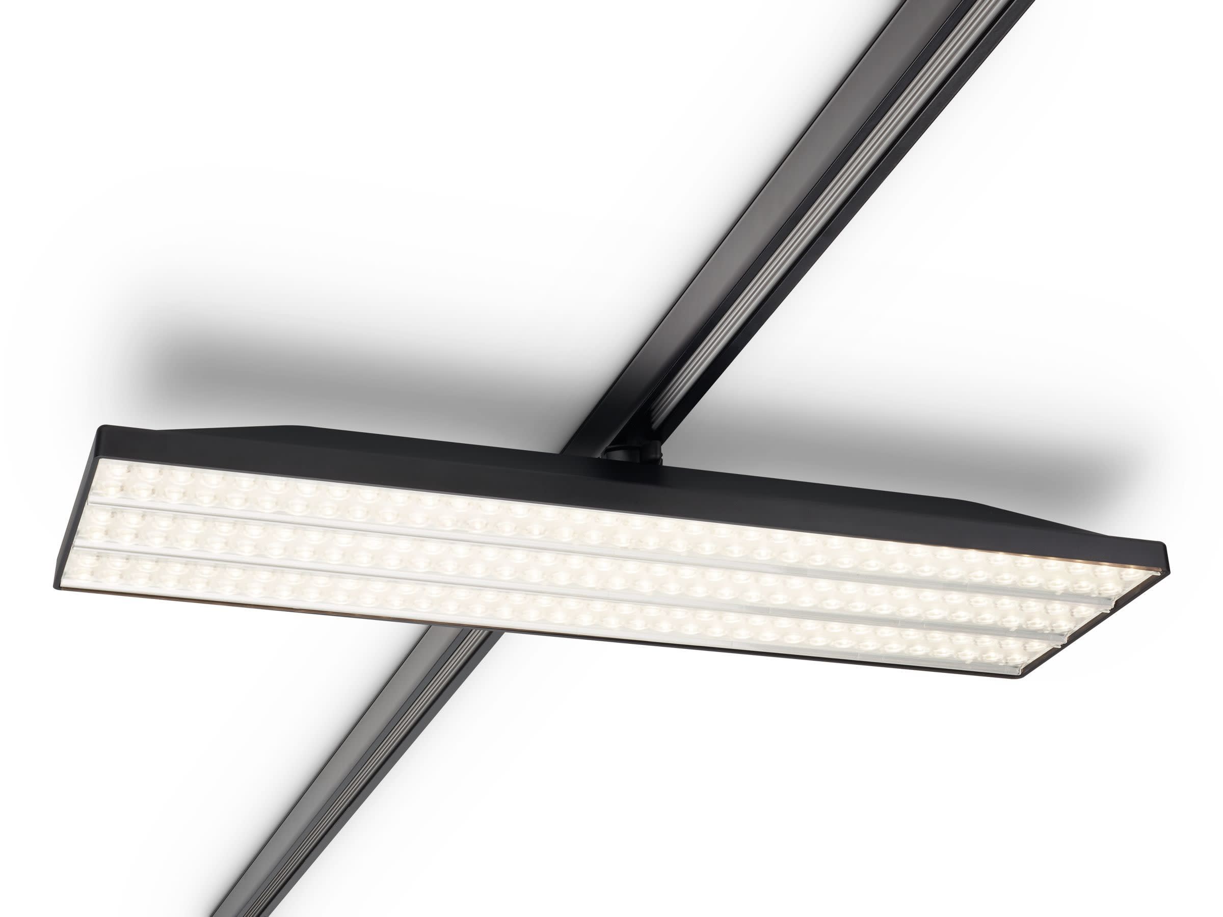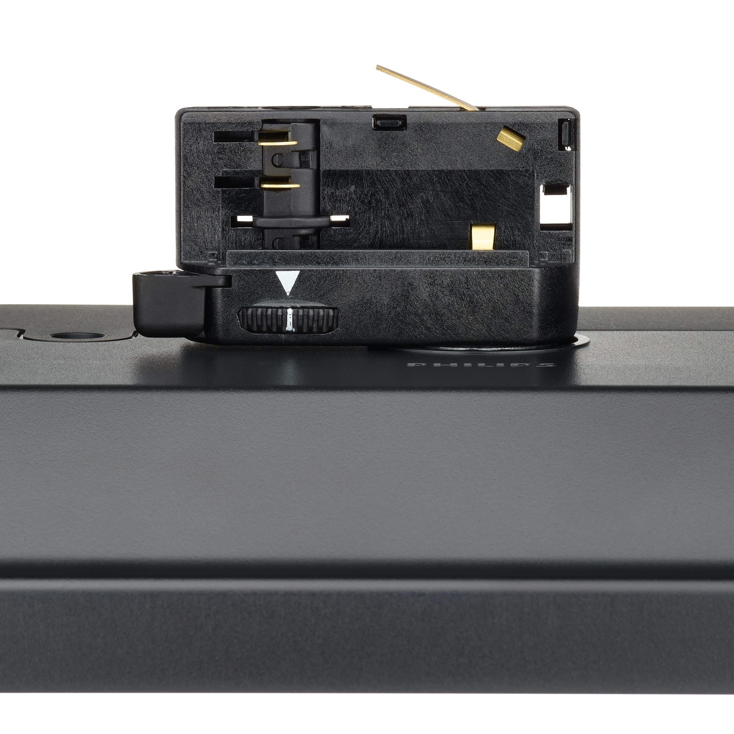 575x196 mm, Plastique, Noir, Système Interact Ready de pilotes sans fil, 8900 lm, 59 W, 150 lm/W, 3000 K, (0.43, 0.40) SDCM3, Optique asymétrique double 35°, faisceau extensif, Transparent, Polycarbonate, IP20 | Protection des doigts, IK02 | 0,2 J standard, Classe électrique I, Rail