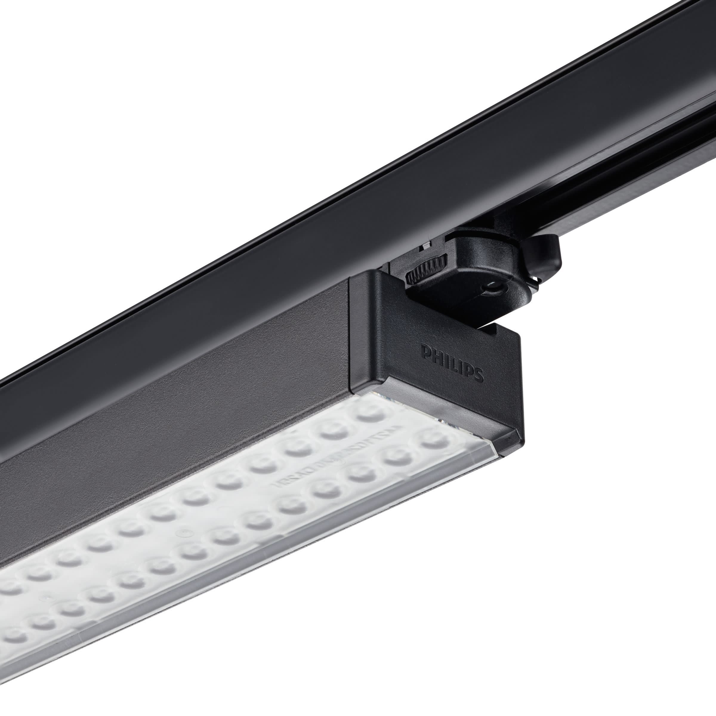 L1200 mm, Aluminium extrudé, Noir, Système Interact Ready de gradation Dali, compatible communication par la lumière visible, 6100 lm, 47 W, 130 lm/W, 4000 K, (0.38, 0.38) SDCM3, Faisceau extensif, Transparent, Polycarbonate, IP20 | Protection des doigts, IK02 | 0,2 J standard, Classe électrique I, Rail