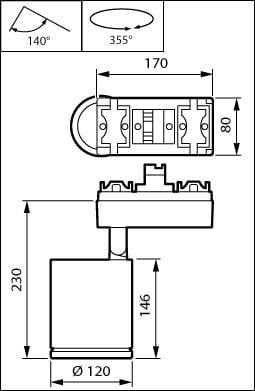 Performance, Maxos fusion variant (exposed driver box), Aluminium, Blanc, Blanc de sécurité (RAL9003), Système Interact Ready de gradation Dali, compatible communication par la lumière visible, Communication par la lumière visible, 4700 lm, 38.5 W, 122 lm/W, 2700 K, (0.458,0.410)3, Faisceau extensif, Transparent, Verre trempé, IP20 | Protection des doigts, IK02 | 0,2 J standard, Classe de sécurité II, Rail 3C