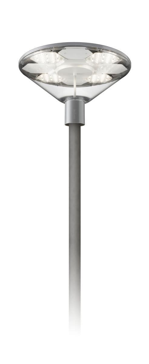 Urban road & street light, Aluminium, Argent, Top de mât pour diamètre 62 mm, Bloc d'alimentation avec DynaDimmer, Gradation LumiStep 6 heures, 4891 lm, 34 W, 115 lm/W, 4000 K, (0.38, 0.38) SDCM 5, CRI70, Distribution extensive, IP66 | Protection contre la pénétration de poussière, protection contre les jets d’eau, IK10 | 20 J résistance au vandalisme, Classe de sécurité II, Protection contre les surtensions en mode différentiel jusque 6 kV et en mode commun jusque 6 kV, Bornier de raccordement à vis 5 pôles