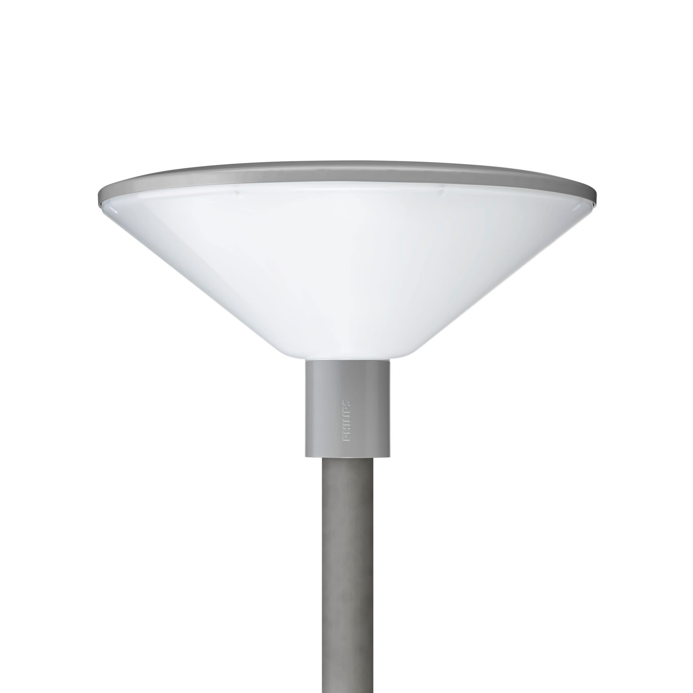 Nous accélérons l’extraordinaire potentiel de la lumière pour des vies plus agréables et un monde meilleur. La gamme TownGuide Performance est composée de six formes modernes caractéristiques : Cône plat, Vasque, Cône classique, Modèle classique, ModèleT et T zero. Pour chacun des modèles à l'exception de T zero (disponible uniquement avec une vasque transparente), vous pouvez choisir entre une vasque transparente (PCC), translucide (PCTR) ou dépolie (PCF). Avec une vaste gamme de flux lumineux, la possibilité de choisir entre une LED d'un blanc neutre ou une LED d'un blanc chaud comme source lumineuse et avec une gamme d'optiques dédiées pour des hauteurs d'installation inférieures, vous trouverez facilement la version la mieux adaptée aux besoins spécifiques de votre projet. Tout cela pour une longue durée de vie de 100 000 heures de fonctionnement. En outre, la gamme TownGuide Performance offre différentes options de systèmes de contrôle qui s'intégreront parfaitement à vos programmes de réduction de la consommation énergétique : systèmes LumiStep et DynaDimmer autonomes, contrôle de la gradation et contrôle de groupe LineSwitch via Coded Mains (Réseau Codé), connectivité à distance intégrée avec le logiciel de gestion de l'éclairage CityTouch. L'installation est facile. Grâce au connecteur rapide à baïonnette avec presse-étoupe intégré situé sur l'embout, il n'est pas nécessaire d'ouvrir le luminaire pour effectuer l'installation. Service tag offre un accès direct à toutes les données pertinentes via l'application Service tag, pour une maintenance facile. Philips a tout mis en œuvre pour proposer le coût total d'exploitation du luminaire (TCO) le plus intéressant. Les produits TownGuide Performance étant des luminaires LED spécifiques et compatibles avec de nombreux systèmes de contrôle, ils permettent de réaliser des économies significatives en termes de coûts énergétiques et de maintenance par rapport à un éclairage conventionnel