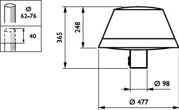 Urban road & street light, Fonte d’aluminium, Gris, Top de mât pour diamètre 62 mm, Bloc d’alimentation électrique (Marche/Arrêt), 5520 lm, 60 W, 92 lm/W, 3000 K, (0.410, 0.390) SDCM 5, CRI80, Distribution symétrique 50, IP66 | Protection contre la pénétration de poussière, protection contre les jets d’eau, IK10 | 20 J résistance au vandalisme, Classe de sécurité II, Niveau de protection contre les surtensions standard, Connecteur interne