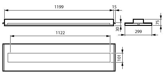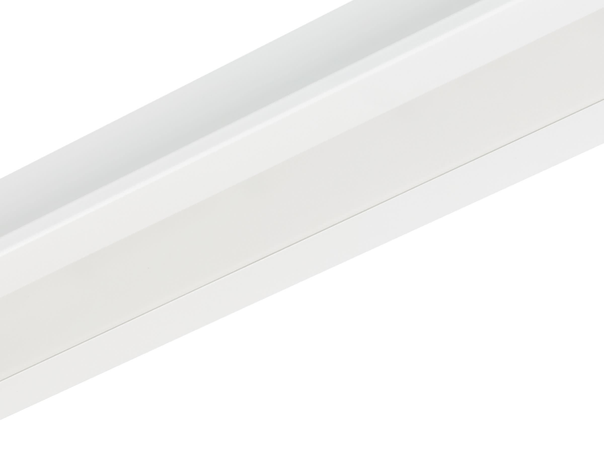 1200X300 mm, Acier, Blanc, Blanc de sécurité (RAL9003), Poudrage simple couche, Crosse de montage – hauteur fixe 30 mm – pour profilés C/U, Bloc d'alimentation avec interface DALI, compatible CC pour un éclairage de secours central (intégré), 4000 lm, 22 W, 182 lm/W, 4000 K, (0.38, 0.38) SDCM ≤3.0, CRI80, UGR19, L65≤3000 cd/m², Conformité aux normes d’éclairage de bureau à faisceau extensif, Réflecteur blanc, Optique à lentille diffuse, Polyméthacrylate de méthyle, IP20 | Protection des doigts, IK03 | 0,3 J, Classe électrique I, Connecteur à poussoir 5 pôles, TP(b) diffuser flammability class, SC | Câble de sécurité