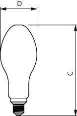 LED, Ovale, Alimentation principale uniquement, 24.5 W, E27, 3000 K, 4000 lm, CRI 80, 25000 h, 163 lm/W, EEL C, PF 0.5, RG0, IP65, SVM 1.6, PstLM 1