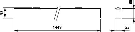 1450x55 mm; H88 mm, Aluminium, Aluminium, Plafonnier, Système Interact Ready de pilotes Sensor Ready, Emplacement standard pour capteur avec capteur SNS210, 4300 lm, 30.5 W, 141 lm/W, 4000 K, (0.38, 0.38) SDCM 3, CRI90, UGR19, Faisceau extensif, Dépoli, Polyméthacrylate de méthyle, IP20 | Protection des doigts, IK03 | 0,35 J renforcé, Classe électrique I, Connecteur à poussoir 3 pôles