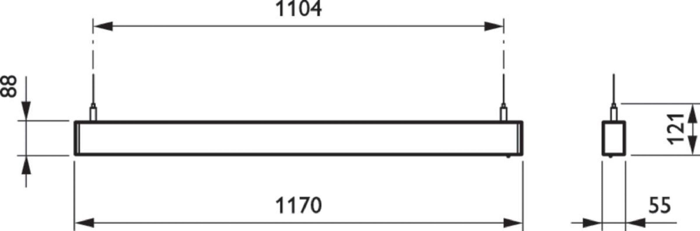 1170x55mm; H88 mm, Aluminium, Aluminium, Suspension, Jeu de suspension 2 câble, Système Interact Ready de pilotes Sensor Ready, Emplacement standard pour capteur avec capteur SNS210, 4000 lm, 33 W, 121 lm/W, Tunable white 2700-6500 K, Tunable, SDCM ≤3, CRI90, UGR19, Conformité aux normes d’éclairage de bureau à faisceau extensif, Dépoli, Polyméthacrylate de méthyle, IP20 | Protection des doigts, IK03 | 0,35 J renforcé, Classe électrique I, Connecteur à poussoir 3 pôles, TP(b) diffuser flammability class