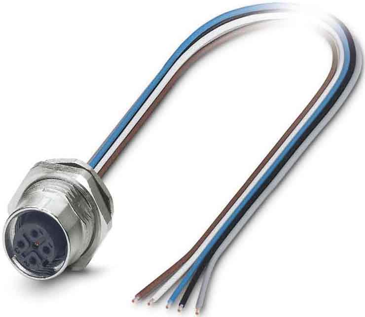 Connecteur appareil face arrière, Universel, 5P, connecteur femelle, droit, M12-SCO, codage A, ext libre, Face arrière, Pg9, Cordons individuels, L= 0,5 m, 0,34 mm², Cordon TPE, Remplacement RoHS II ss exception 6c (Pb < 0,1 %) ref 1237435