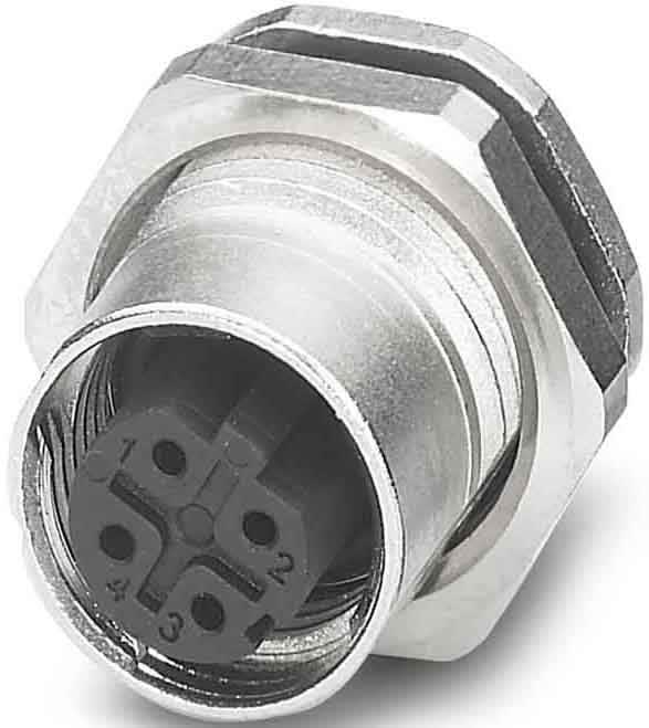 Connecteur d'appareil face arrière, 4-pôles, connecteur femelle, droit, M12-SPEEDCONNEC, détrompage: D, Montage face arrière, Pg9, Picots de soudage, Produit de remplacement selon RoHS II sans exception 6c (Pb < 0,1 %) référence : 1237394