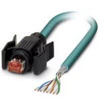 Câble Ethernet préconfectionné, blindé, à 4 paires, AWG 26 souple (7 fils), RAL 5021 (bleu d'eau), connecteur mâle RJ45/IP67, noir sur extrémité non terminée, Line, longueur 5 m