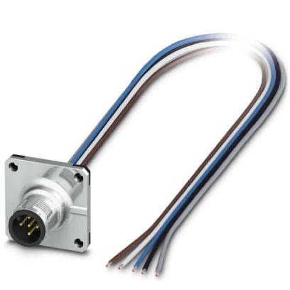 Embase paroi avant, 5P, Connecteur mâle, droit, M12, codage A, sr ext libre, Face avant, Bride carrée, Cordons individuels, L= 0,5 m, 0,34 mm², Cordon TPE, Remplacement selon RoHS II ss exception 6c (Pb < 0,1 %) référence: 1239716