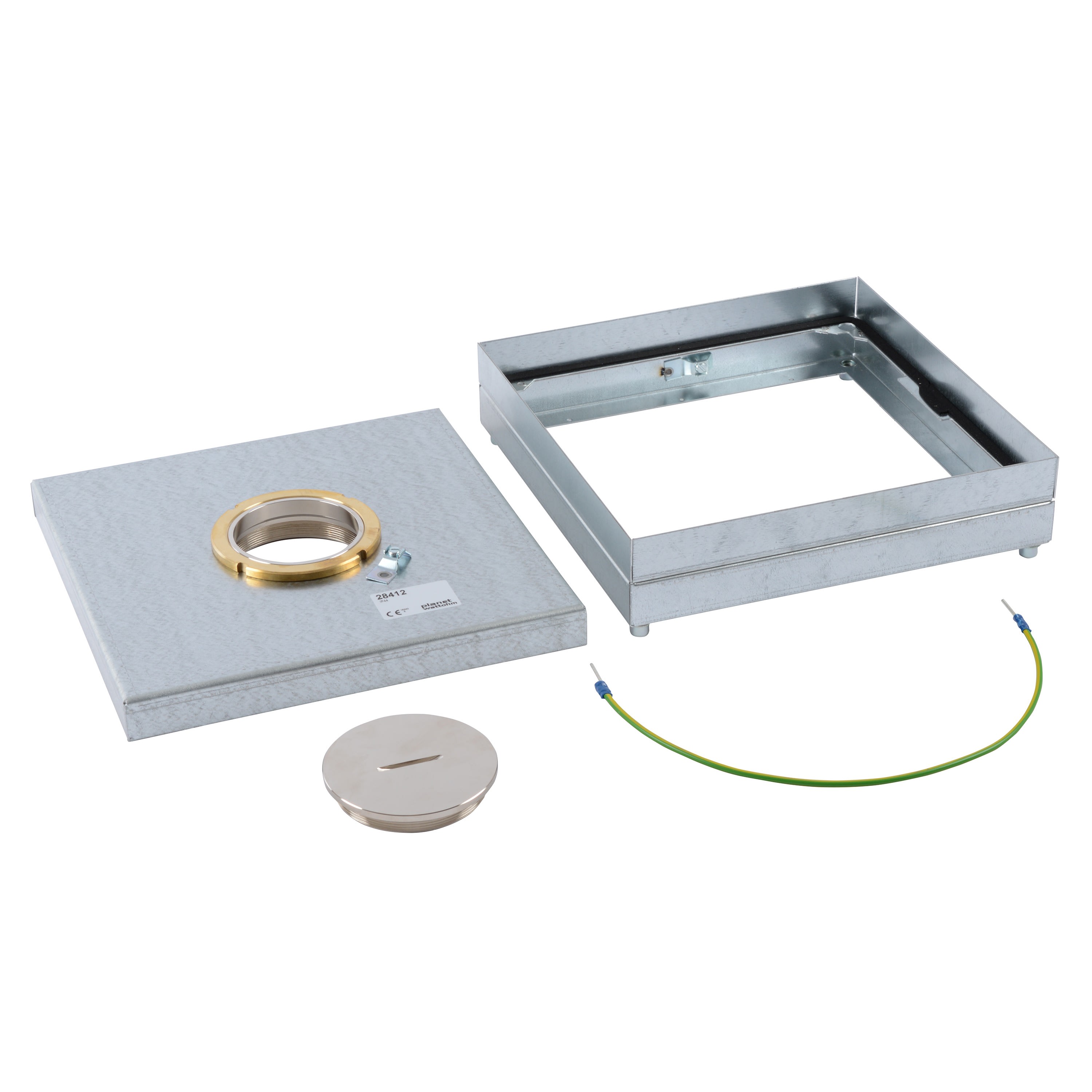 À installer dans la boite d’encastrement réf. 28415 Couvercle amovible pouvant être équipé d'une sortie de câble centrale Equipée d’une sortie de câble centrale à dévisser, permettant de repositionner le couvercle lorsque les fiches sont branchées