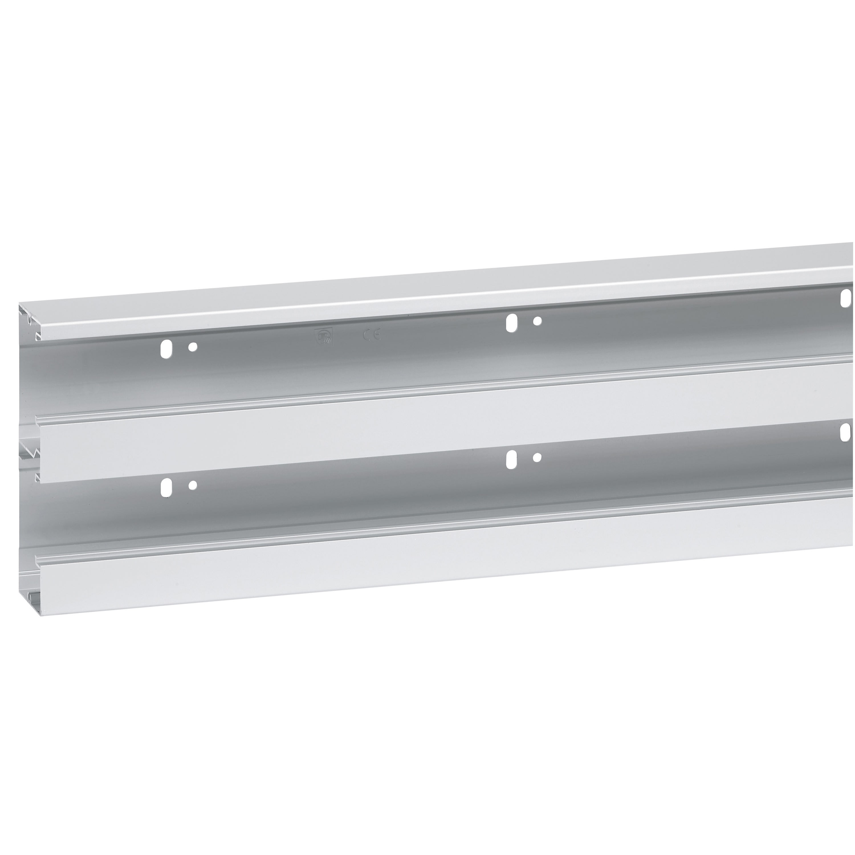 Goulotte d'installation Reçoit l’appareillage format 45x45 (type appareillage Logix) par simple clipsage, conférant à cet ensemble rapidité de mise en œuvre et d’évolutivité Spécialement conçue pour les installations périmétriques permettant le cheminement des courants forts et faibles dans les bâtiments tertiaires