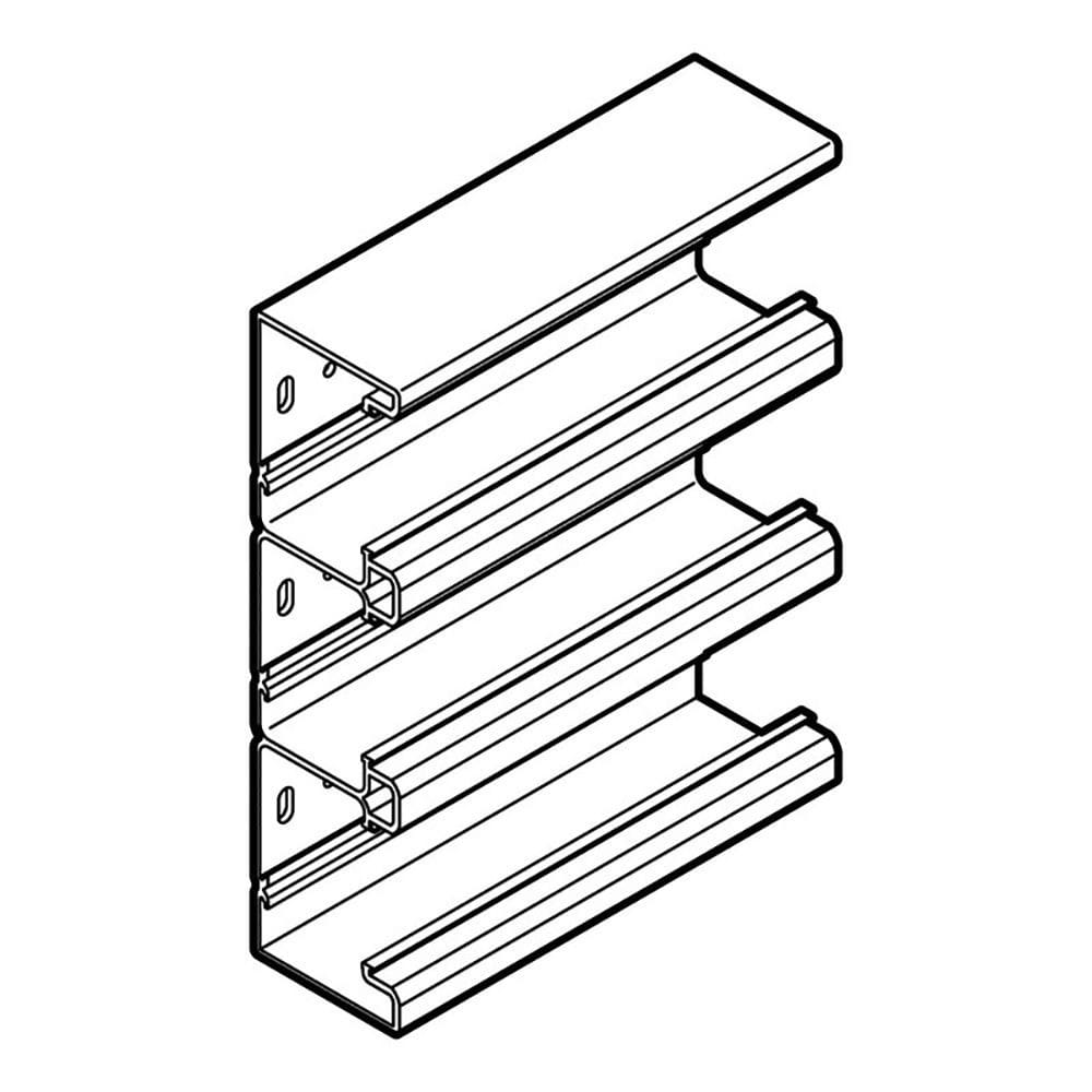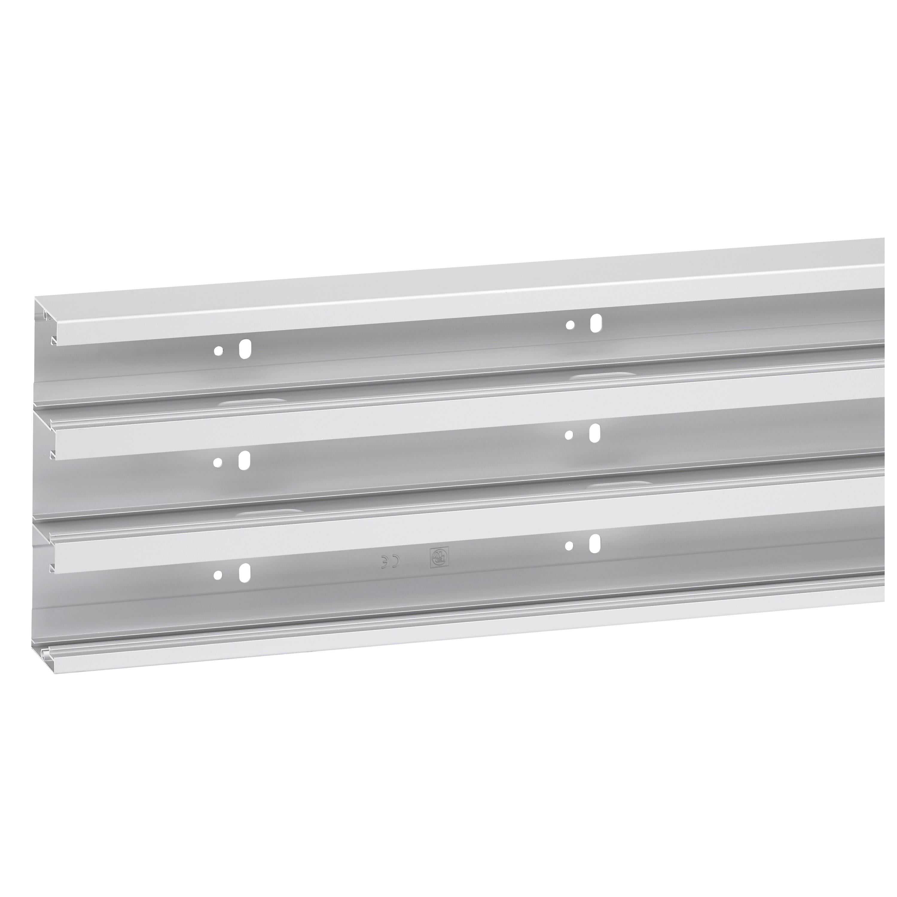 Goulotte d'installation Reçoit l’appareillage format 45x45 (type appareillage Logix) par simple clipsage, conférant à cet ensemble rapidité de mise en œuvre et d’évolutivité Spécialement conçue pour les installations périmétriques permettant le cheminement des courants forts et faibles dans les bâtiments tertiaires