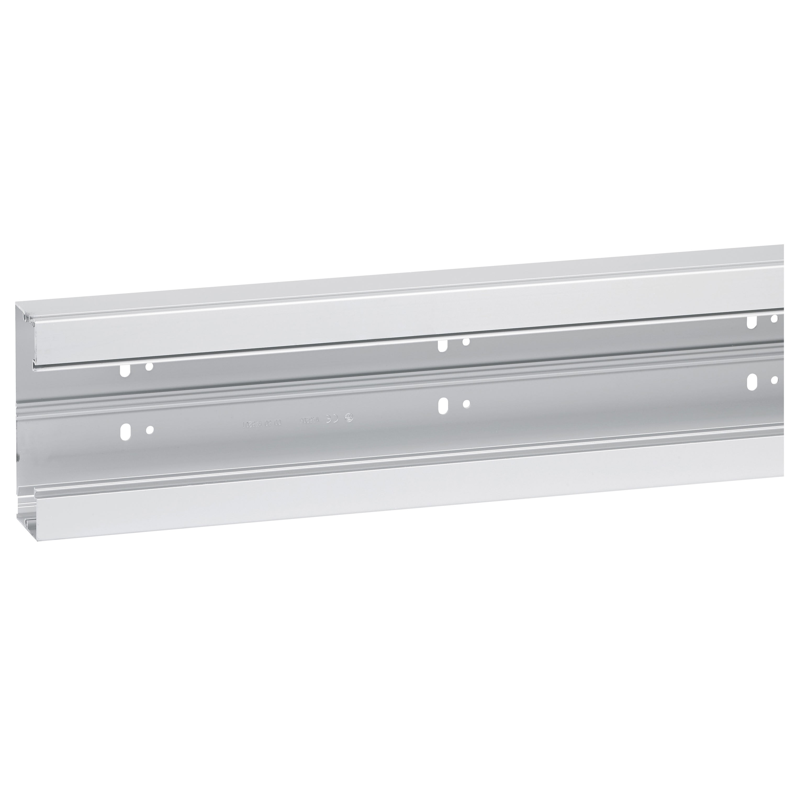 Goulotte d'installation Reçoit l’appareillage format 45x45 (type appareillage Logix) par simple clipsage, conférant à cet ensemble rapidité de mise en œuvre et d’évolutivité Spécialement conçue pour les installations périmétriques permettant le cheminement des courants forts et faibles dans les bâtiments tertiaires