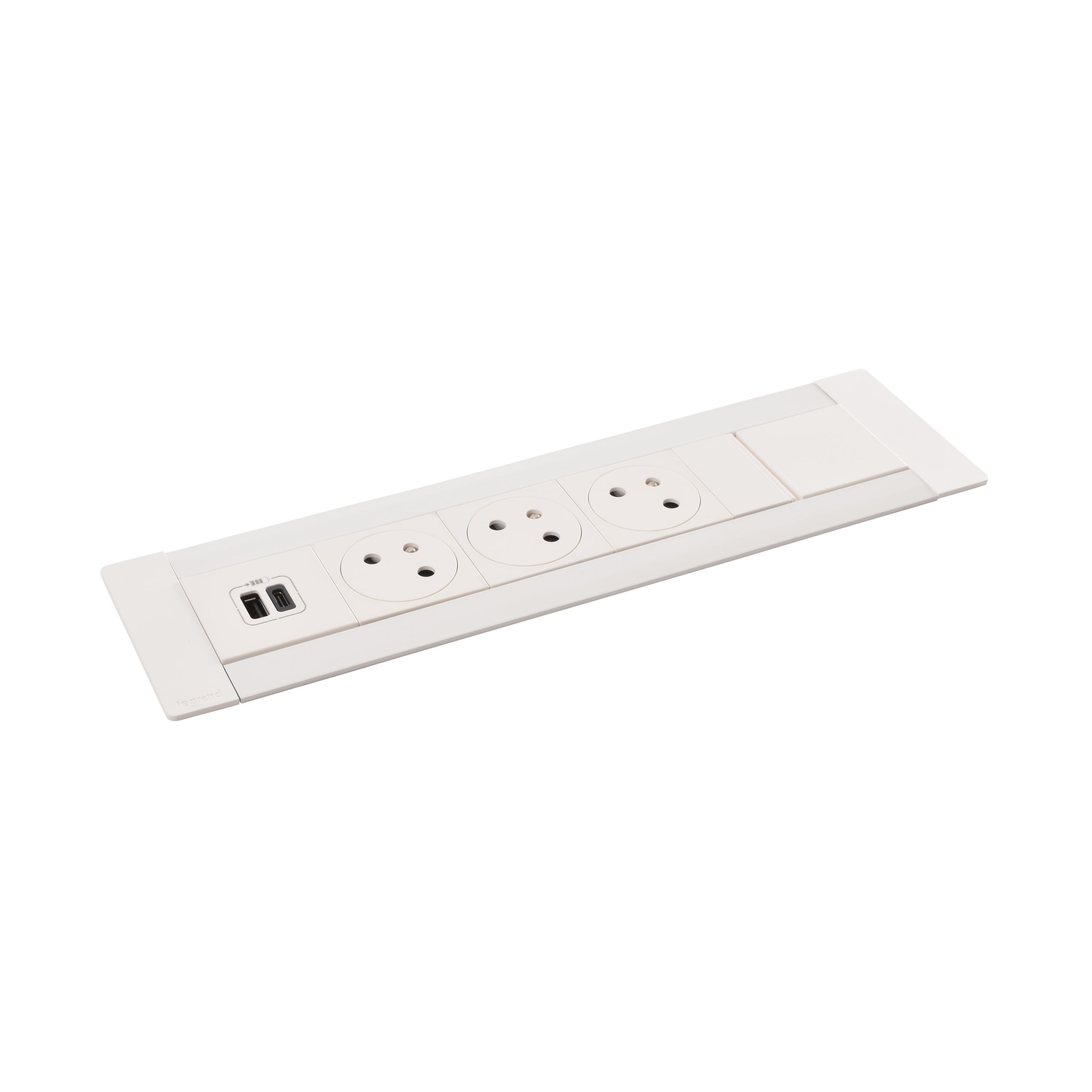 Multilink Incara 8 modules version vertical pour encastrement dans cloisons équipé de 3 prises de courant Surface et 1 chargeur USB Type-A + Type-C 15W - finition blanc avec profondeur d'encastrement 50mm minimum