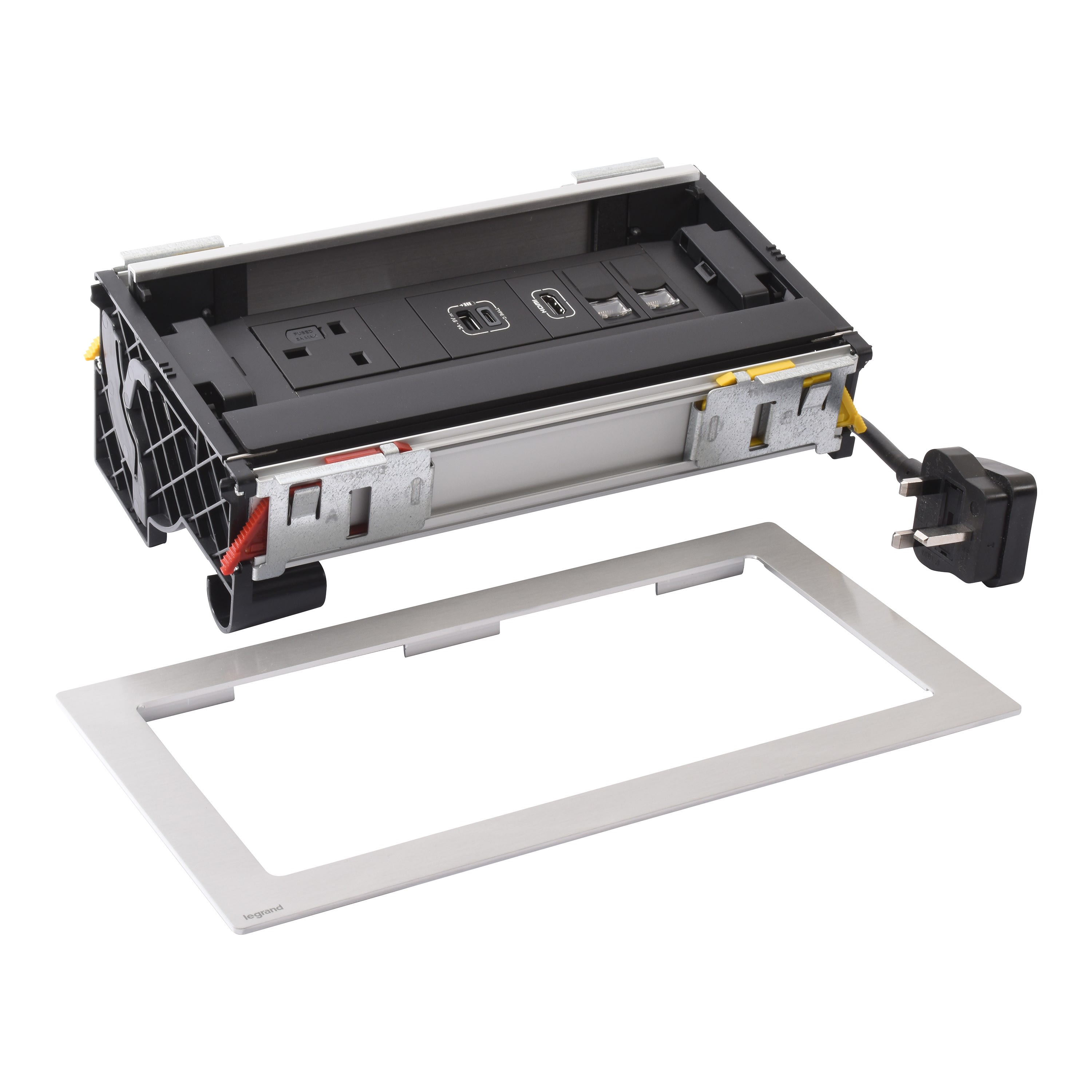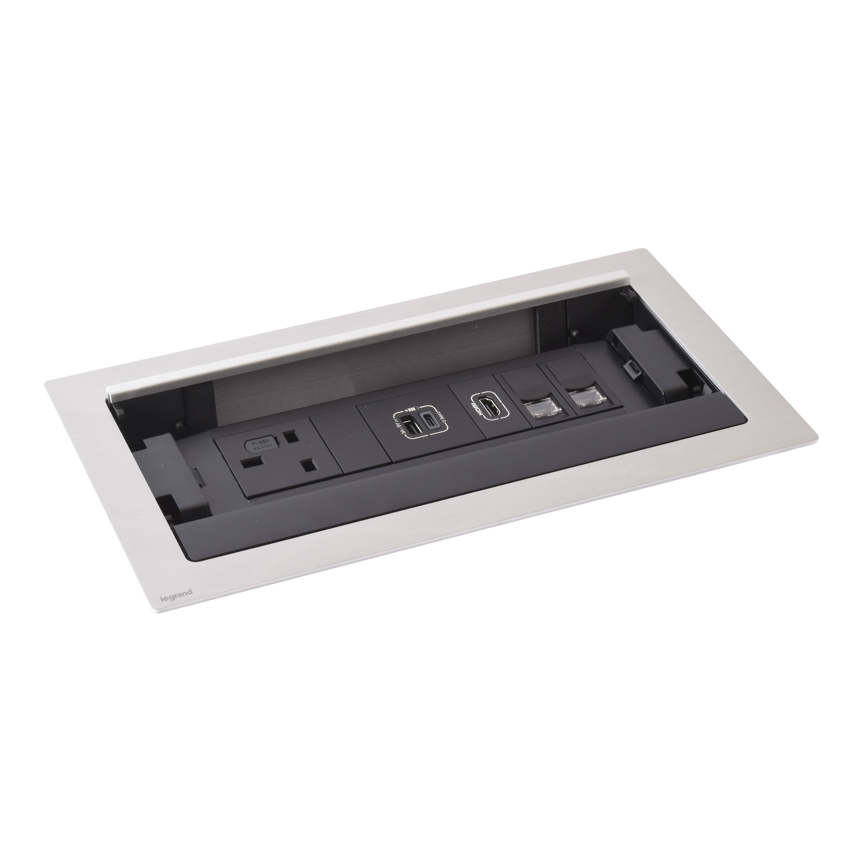 Planet Wattohm - Prise Flip-up 2P+T BS + USB A+C + RJ45 + HDMI - 8 mod - cordon 2m BS - métal - 654959