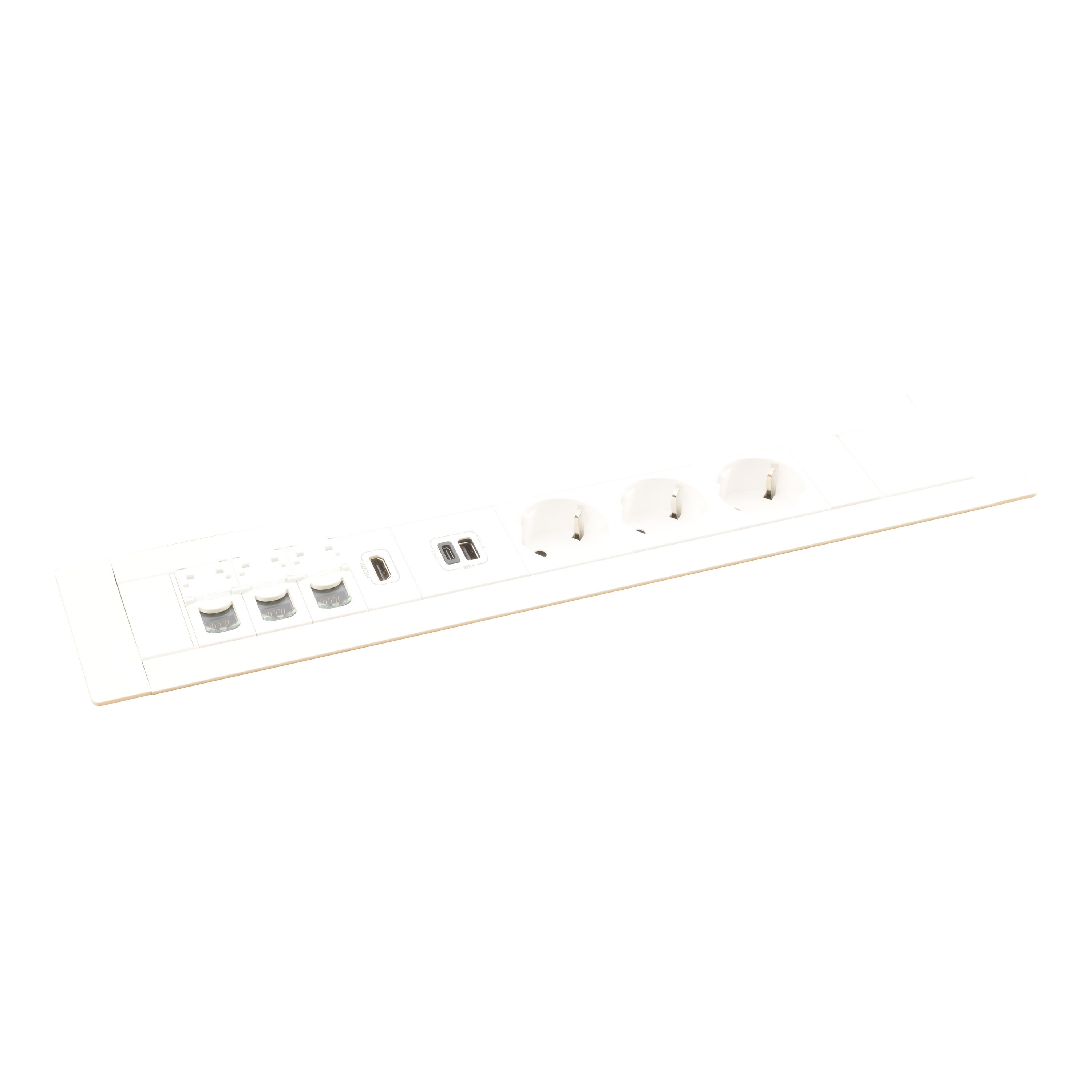 Planet Wattohm - Prise Multilink vert. mur 3x2P+T Schuko, USB A+C, 3RJ45, HDMI - cord 2m - blanc - 654863