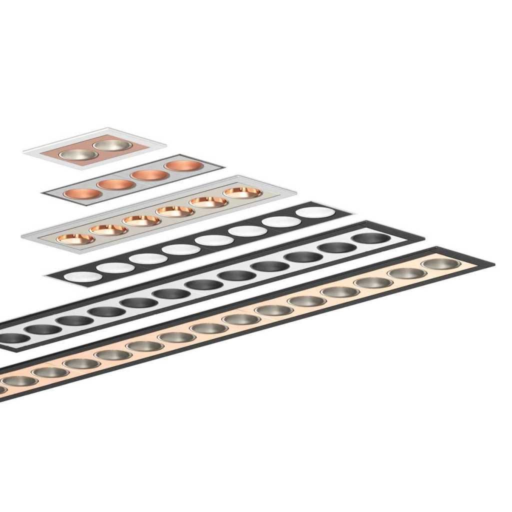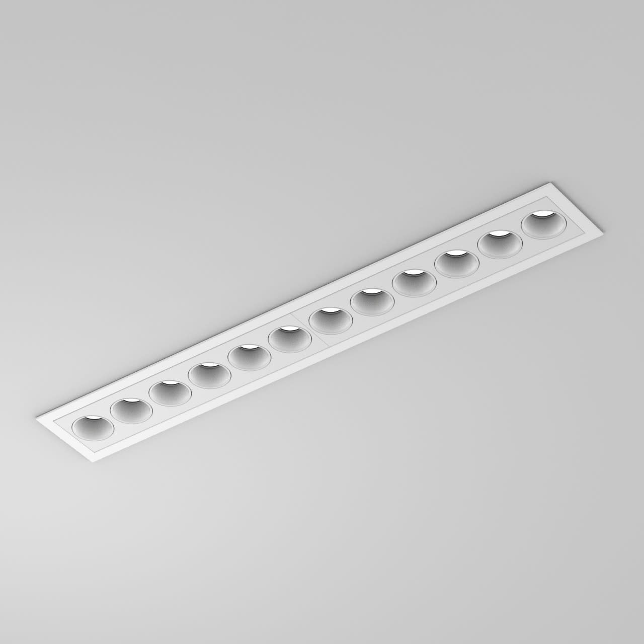 Luminaire pour montage encastré, de grande qualité, en aluminium extrudé, anti-éblouissement en polycarbonate. Luminaire équipé de 12 points lumineux avec LED haute puissance de grande efficacité dans la combinaison de couleurs : Tube anti-éblouissant white matte, Masque white matte, Boîtier revêtu par poudre blanc RAL9016, structure fine mate. Avec technologie de lentille haut de gamme avec optique en retrait. Direct Type de Diffusion, Géométrie lumineuse symétrique avec un angle de ayonnement ’Medium’ de 30°. Luminaire équipé d’une technologie LED innovante avec une efficacité de 79 lm par W et une flux lumineux sortant de 2047 lm lm pour 26 W, en température de couleur 4000 K. Nombre d´adresses DALI : 1. Convertisseur DALI pour gradation, Evaluation de l’éblouissement selon la classification selon DIN EN 12464-1.2021-11 avec UGR < 16, Indice de rendu des couleurs (IRC) > 90, tolérance chromatique étroite MacAdam 3, Groupe de risque RG1 selon norme IEC 62471, durée de vie nominale > 50.000 h [selon le décret de l’UE], classe énergétique (EEI). Indice de protection IP20, classe de protection I. Raccordement électrique par pôles utilisés. Embouts inclus4 ressorts de montage. Option de commutateur : C, source lumineuse remplaçable par le fabricant, dispositif de commande remplaçable par un professionnel autorisé, Dimensions LxlxH : 376x56x043 mm, Découpe LxlxH : 370x49x080 mm, Poids : 0,7 kg