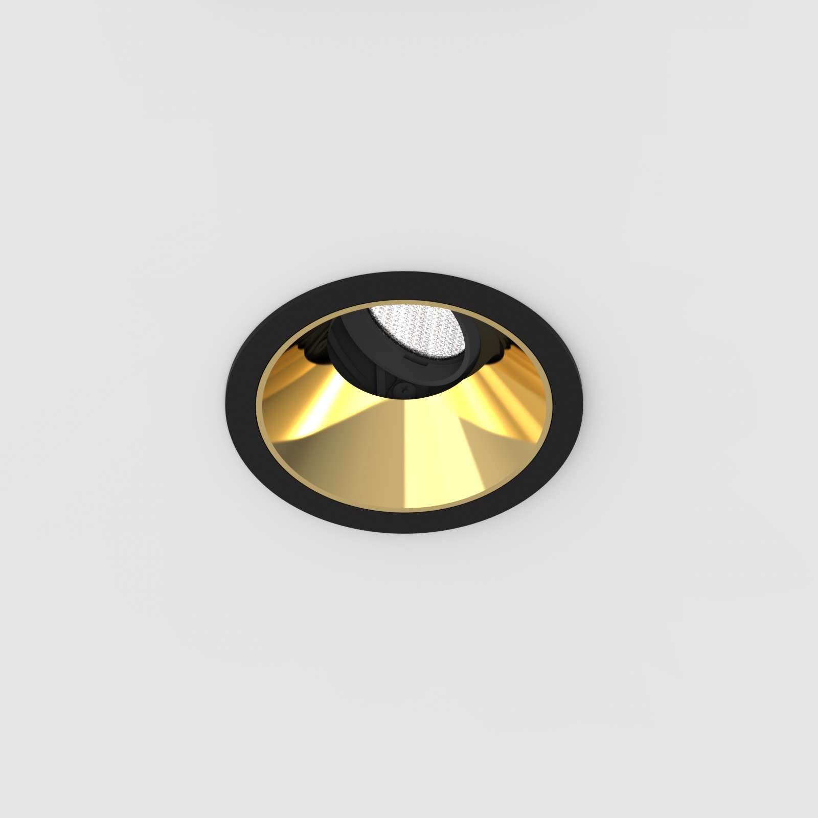 Projecteur rond encastré Led en aluminium moulé sous pression thermolaqué boîtier/cadre noir mat et Cône anti-éblouissement noir mat, réflecteur secondaire or brillant. La technologie LED de dernière génération avec un flux lumineux de941 lm pour13,5 W Distribution symétrique dans la température de couleur de 4000 K. Caractéristique de rayonnement : un faisceau ’wide flood’ en 50 °. la tête du réflecteur peut être pivotée de 30°, tournée de 355°, Projecteur complet incluant réflecteur et Reflectors and Converter, Indice de rendu des couleurs (IRC) > 90, Evaluation de l'éblouissement selon la classification selon DIN EN 12464-1.2021-11 avec UGR < 19, luminaire de poste de travail compatible écran selon DIN EN 12464-1 (luminosité à 65° <= 1000 cd/m²), Durée de vie nominale > 60.000 h [selon le décret de l’UE]. Indice de protection IP20, classe de protection II. Remplacement du réflecteur secondaire possible sans outils. Peut être commandé en plus avec un capteur externe de mouvement et de lumière du jour. Sur demande également en version d’éclairage d’urgence, batterie 3h. Option de commutateur : A, Dimensions : DMxH : 0078x098 mm, Découpe DMxH : 68x148 mm, Poids : 0,3 kg