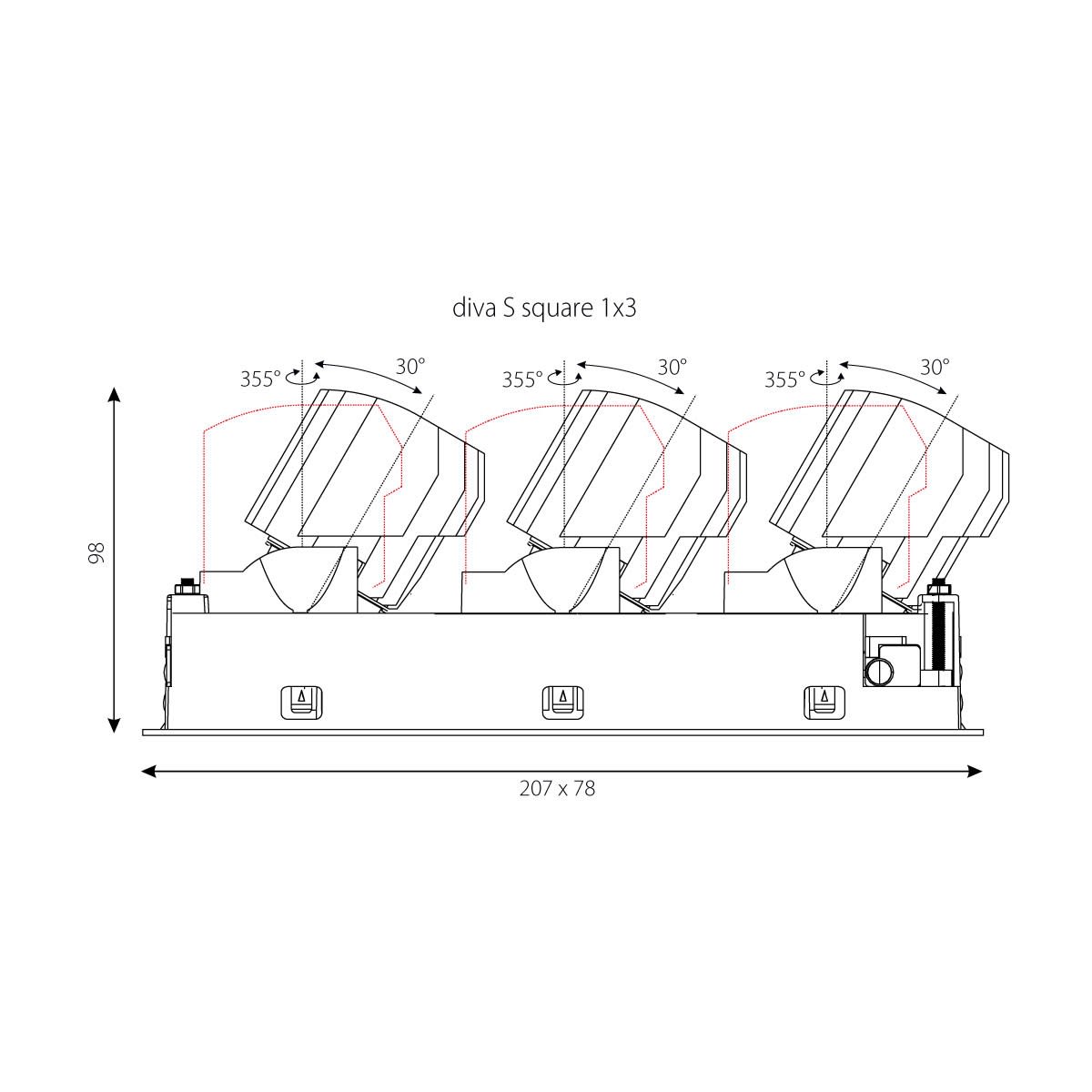 diva S square encastré 1x3 lin. blanc 207x78mmLED HO 3000K 3x13,5W 3x865lm 50° DALI CRI90