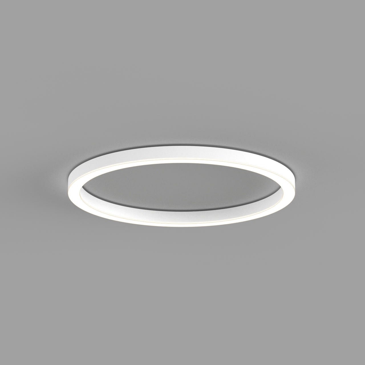 Anneau lumineux LED de grande qualité avec boîtier de luminaire au design minimaliste, en tôle d’acier soudée sans soudure apparente avec surface thermolaquée en blanc ’RAL9016’, structure fine mate, pour montage en saillie , pour éclairage direct. Raccordement électrique par 3 pôles utilisés. Diffuseuren PMMA satiné pour un éclairage homogène, de 7 mm de haut pour la diffusion latérale. Luminaire équipé d’une technologie LED innovante avec une efficacité de 75 lm par W et une flux lumineux sortant de Convertisseur inclus, Evaluation de l''éblouissement selon la classification selon DIN EN 12464-1.2021-11 avec UGR < 22, Indice de rendu des couleurs (IRC) > 90, tolérance chromatique étroite MacAdam 3, Indice de protection IP20, classe de protection I, Groupe de risque RG = 0 selon norme IEC 62471, durée de vie nominale > 60.000 h [selon le décret de l’UE]. option de commutateur : A, Dimensions DMxH : 1040x061 mm, largeur de la section 54 mm. Poids : 14.0 kg
