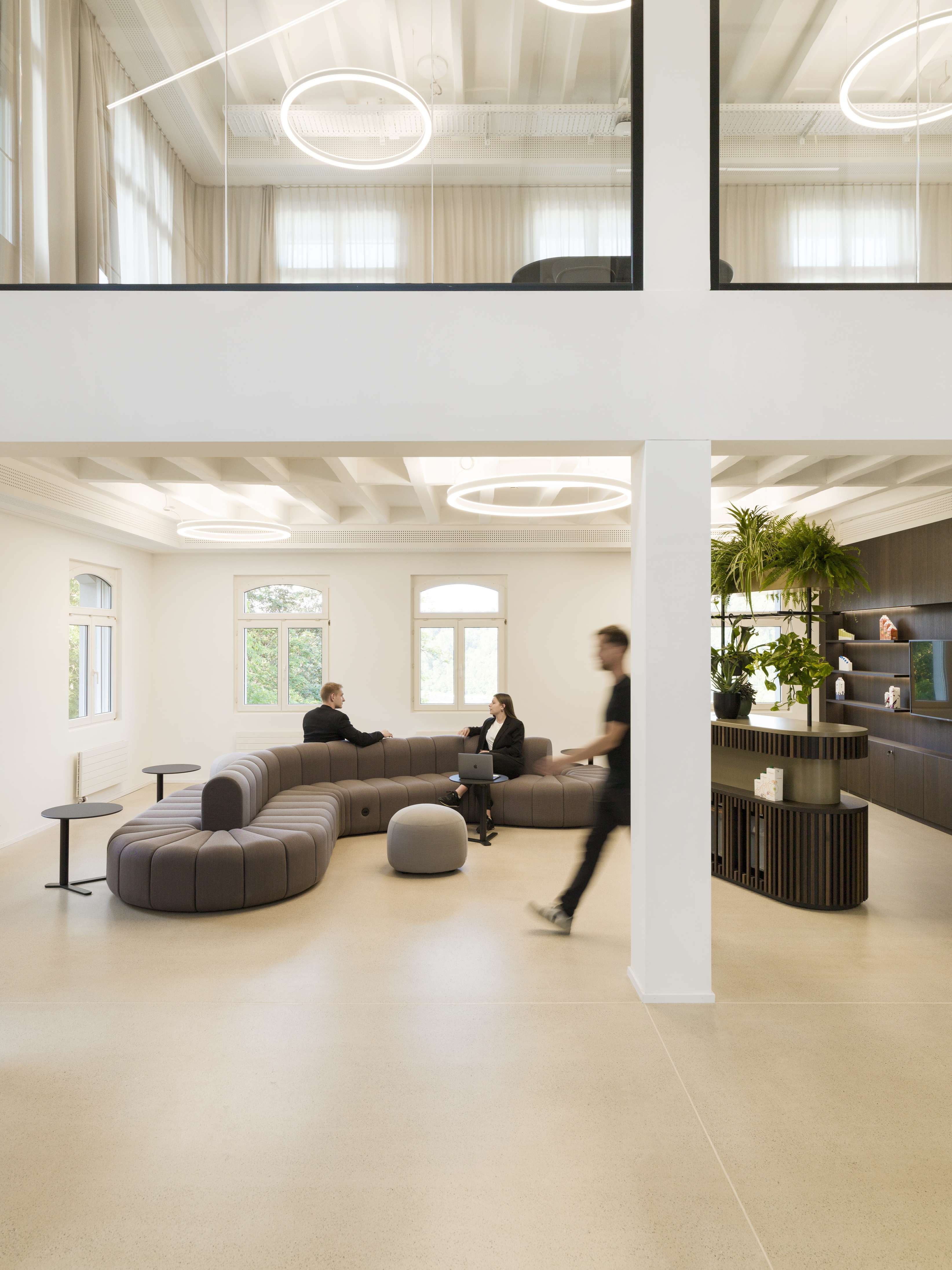 Anneau lumineux LED de grande qualité avec boîtier de luminaire au design minimaliste, en tôle d’acier soudée sans soudure apparente avec surface thermolaquée en noir ’RAL9005’, structure fine mate, pour montage en saillie , pour éclairage direct. Raccordement électrique par 5 pôles utilisés. Diffuseuren PMMA satiné pour un éclairage homogène, de 7 mm de haut pour la diffusion latérale. Luminaire équipé d’une technologie LED innovante avec une efficacité de 58 lm par W et une flux lumineux sortant de Convertisseur DALI pour gradation inclus, Nombre d''adresses DALI : 2, Evaluation de l''éblouissement selon la classification selon DIN EN 12464-1.2021-11 avec UGR < 22, luminaire de poste de travail compatible écran selon DIN EN 12464-1 (luminosité à 65° <= 3000 cd/m²), Indice de rendu des couleurs (IRC) > 90, tolérance chromatique étroite MacAdam 3, Indice de protection IP20, classe de protection I, Groupe de risque RG = 0 selon norme IEC 62471, durée de vie nominale > 60.000 h [selon le décret de l’UE]. option de commutateur : C, Dimensions DMxH : 0760x061 mm, largeur de la section 54 mm. Poids : 10.0 kg