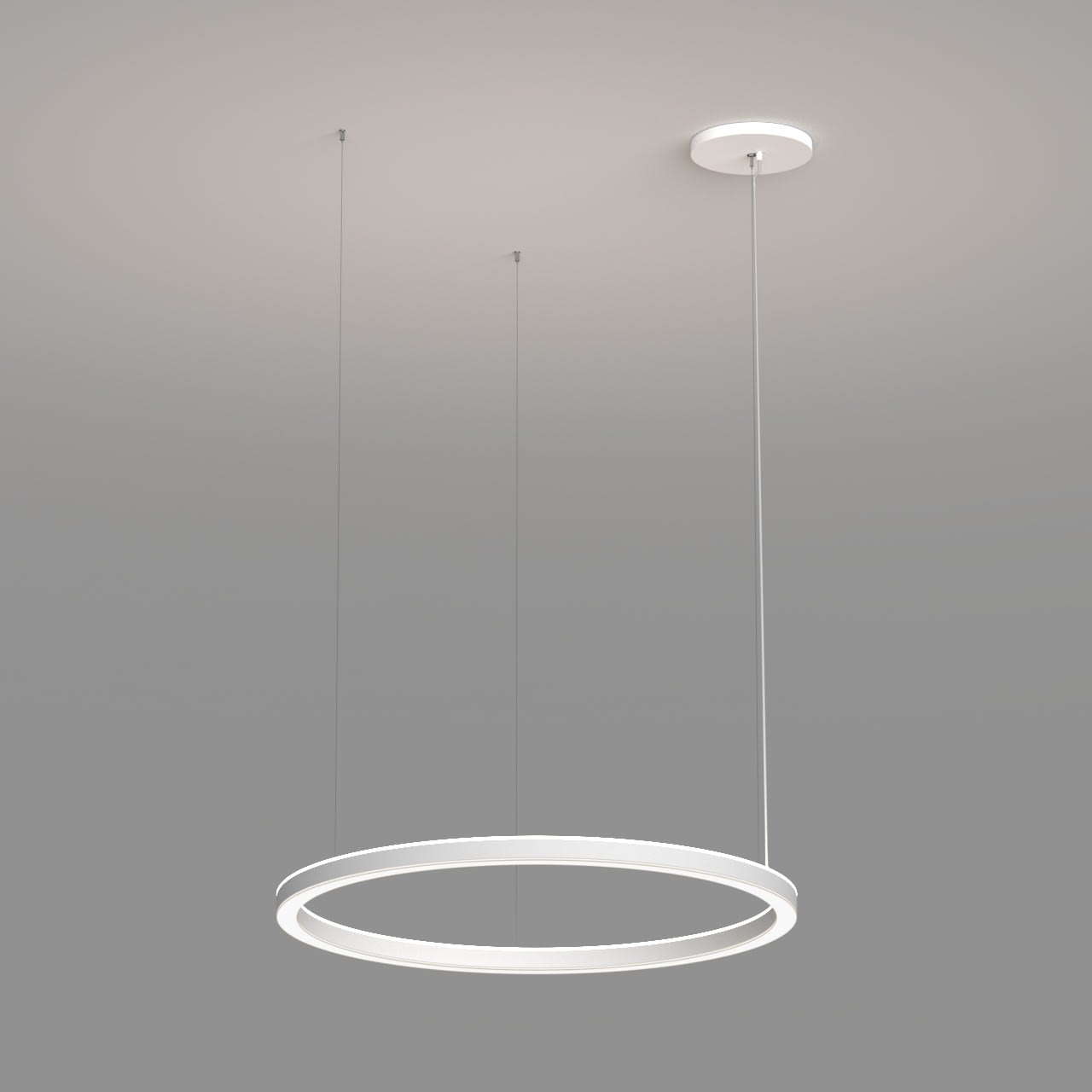 Anneau lumineux LED de grande qualité avec boîtier de luminaire au design minimaliste, en tôle d’acier soudée sans soudure apparente avec surface thermolaquée en blanc ’RAL9016’, structure fine mate, pour montage en suspension, pour éclairage direct/indirect, comparable 1:1. Installation par 3 filins de suspension 1500 mm avec fixation-tendeur rapide et gabarit de forage, avec réglage de la longueur. Raccordement électrique par 5 pôles utilisés et patère de plafond, 270x40 mm (DMxH). Positionnement de la patère au choix, centré ou latéral. Diffuseurs direct et indirect en PMMA satiné pour un éclairage homogène, de 7 mm de haut pour la diffusion latérale. Luminaire équipé d’une technologie LED innovante avec une efficacité de 82 lm par W et une flux lumineux sortant de Convertisseur DALI pour gradation inclus, Nombre d''adresses DALI : 2, Evaluation de l''éblouissement selon la classification selon DIN EN 12464-1.2021-11 avec UGR < 19, Indice de rendu des couleurs (IRC) > 90, tolérance chromatique étroite MacAdam 3, Indice de protection IP40, classe de protection I, Groupe de risque RG = 0 selon norme IEC 62471, durée de vie nominale > 60.000 h [selon le décret de l’UE]. option de commutateur : C, Dimensions DMxH : 1360x062 mm, largeur de la section 54 mm. Poids : 18.0 kg