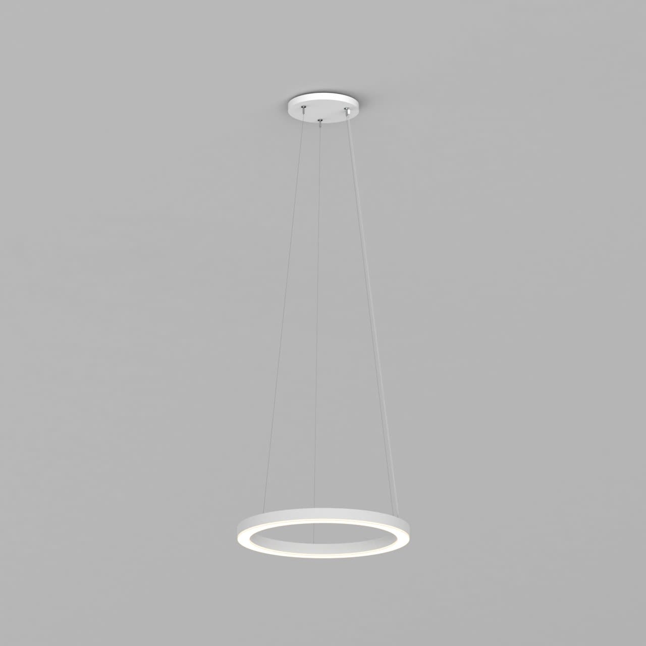 Anneau lumineux LED de grande qualité avec boîtier de luminaire au design minimaliste, en tôle d’acier soudée sans soudure apparente avec surface thermolaquée en blanc ’RAL9016’, structure fine mate, pour montage en suspension, pour éclairage direct. Installation par 3 filins de suspension 2000 mm avec fixation-tendeur rapide, avec réglage de la longueur. Raccordement électrique par 5 pôles utilisés et patère de plafond, 270x47 mm (DMxH). Positionnement de la patère au choix centré. La distance minimale entre 600 mm. Diffuseuren PMMA satiné pour un éclairage homogène, de 7 mm de haut pour la diffusion latérale. Luminaire équipé d’une technologie LED innovante avec une efficacité de 79 lm par W et une flux lumineux sortant de Convertisseur DALI pour gradation inclus, Nombre d''adresses DALI : 1, Evaluation de l''éblouissement selon la classification selon DIN EN 12464-1.2021-11 avec UGR < 25, Indice de rendu des couleurs (IRC) > 90, tolérance chromatique étroite MacAdam 3, Indice de protection IP20, classe de protection I, Groupe de risque RG = 0 selon norme IEC 62471, durée de vie nominale > 60.000 h [selon le décret de l’UE]. option de commutateur : C, Dimensions DMxH : 0760x055 mm, largeur de la section 54 mm. Poids : 10.0 kg
