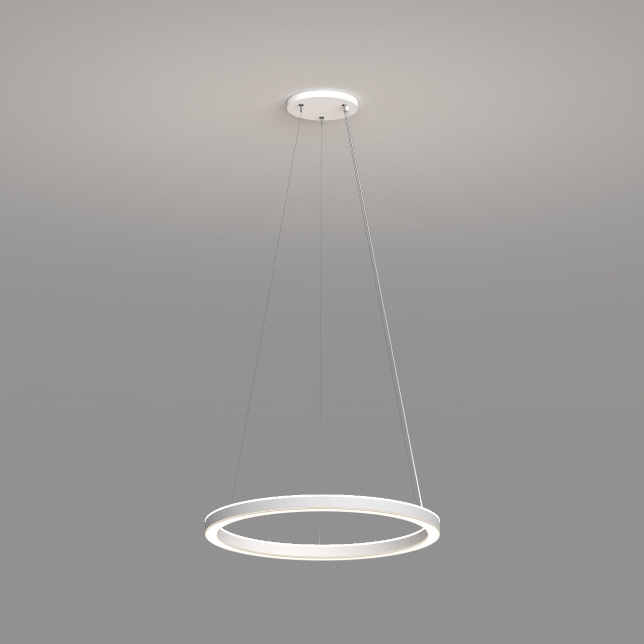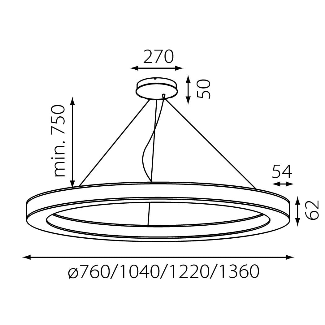 Anneau lumineux LED de grande qualité avec boîtier de luminaire au design minimaliste, en tôle d’acier soudée sans soudure apparente avec surface thermolaquée en blanc ’RAL9016’, structure fine mate, pour montage en suspension, pour éclairage direct/indirect, comparable 1:1. Installation par 3 filins de suspension 2000 mm avec fixation-tendeur rapide, avec réglage de la longueur. Raccordement électrique par 5 pôles utilisés et patère de plafond, 270x47 mm (DMxH). Positionnement de la patère au choix centré. La distance minimale entre 600 mm. Diffuseurs direct et indirect en PMMA satiné pour un éclairage homogène, de 7 mm de haut pour la diffusion latérale. Luminaire équipé d’une technologie LED innovante avec une efficacité de 72 lm par W et une flux lumineux sortant de Convertisseur DALI pour gradation inclus, Nombre d''adresses DALI : 2, Evaluation de l''éblouissement selon la classification selon DIN EN 12464-1.2021-11 avec UGR < 19, Indice de rendu des couleurs (IRC) > 90, tolérance chromatique étroite MacAdam 3, Indice de protection IP40, classe de protection I, Groupe de risque RG = 0 selon norme IEC 62471, durée de vie nominale > 60.000 h [selon le décret de l’UE]. option de commutateur : C, Dimensions DMxH : 1040x062 mm, largeur de la section 54 mm. Poids : 14.0 kg