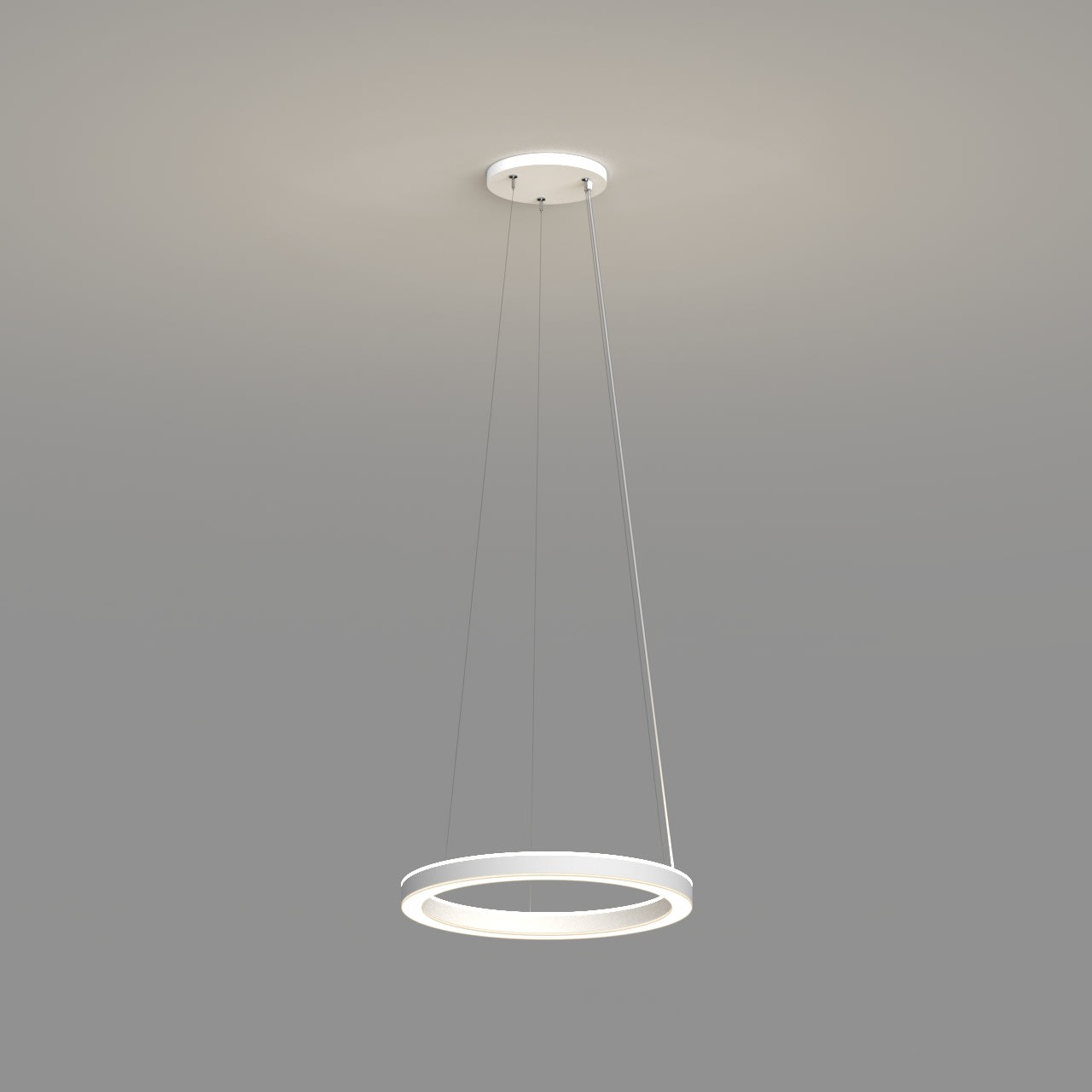 Anneau lumineux LED de grande qualité avec boîtier de luminaire au design minimaliste, en tôle d’acier soudée sans soudure apparente avec surface thermolaquée en blanc ’RAL9016’, structure fine mate, pour montage en suspension, pour éclairage direct/indirect, comparable 1:1. Installation par 3 filins de suspension 2000 mm avec fixation-tendeur rapide, avec réglage de la longueur. Raccordement électrique par 5 pôles utilisés et patère de plafond, 270x47 mm (DMxH). Positionnement de la patère au choix centré. La distance minimale entre 600 mm. Diffuseurs direct et indirect en PMMA satiné pour un éclairage homogène, de 7 mm de haut pour la diffusion latérale. Luminaire équipé d’une technologie LED innovante avec une efficacité de 78 lm par W et une flux lumineux sortant de Convertisseur DALI pour gradation inclus, Nombre d''adresses DALI : 2, Evaluation de l''éblouissement selon la classification selon DIN EN 12464-1.2021-11 avec UGR < 19, Indice de rendu des couleurs (IRC) > 90, tolérance chromatique étroite MacAdam 3, Indice de protection IP40, classe de protection I, Groupe de risque RG = 0 selon norme IEC 62471, durée de vie nominale > 60.000 h [selon le décret de l’UE]. option de commutateur : C, Dimensions DMxH : 0760x062 mm, largeur de la section 54 mm. Poids : 10.0 kg