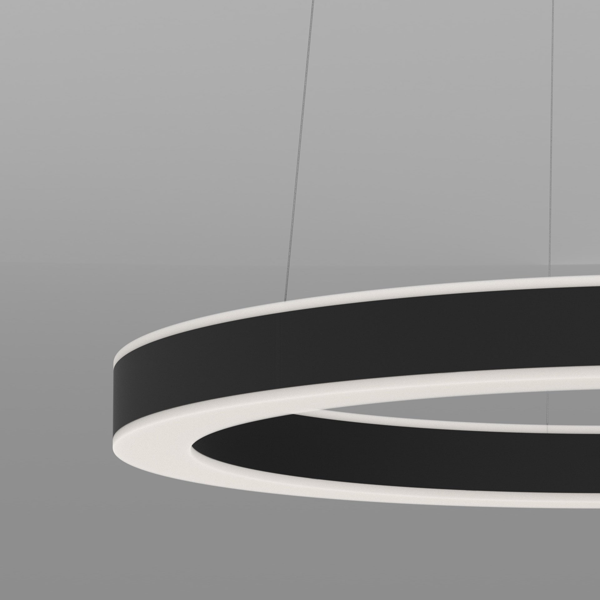 Anneau lumineux LED de grande qualité avec boîtier de luminaire au design minimaliste, en tôle d’acier soudée sans soudure apparente avec surface thermolaquée en noir ’RAL9005’, structure fine mate, pour montage en suspension, pour éclairage direct/indirect, comparable 1:1. Installation par 3 filins de suspension 2000 mm avec fixation-tendeur rapide, avec réglage de la longueur. Raccordement électrique par 5 pôles utilisés et patère de plafond, 270x47 mm (DMxH). Positionnement de la patère au choix centré. La distance minimale entre 600 mm. Diffuseurs direct et indirect en PMMA satiné pour un éclairage homogène, de 7 mm de haut pour la diffusion latérale. Luminaire équipé d’une technologie LED innovante avec une efficacité de 64 lm par W et une flux lumineux sortant de Convertisseur DALI pour gradation inclus, Nombre d''adresses DALI : 2, Evaluation de l''éblouissement selon la classification selon DIN EN 12464-1.2021-11 avec UGR < 19, Indice de rendu des couleurs (IRC) > 90, tolérance chromatique étroite MacAdam 3, Indice de protection IP40, classe de protection I, Groupe de risque RG = 0 selon norme IEC 62471, durée de vie nominale > 60.000 h [selon le décret de l’UE]. option de commutateur : C, Dimensions DMxH : 1360x062 mm, largeur de la section 54 mm. Poids : 18.0 kg