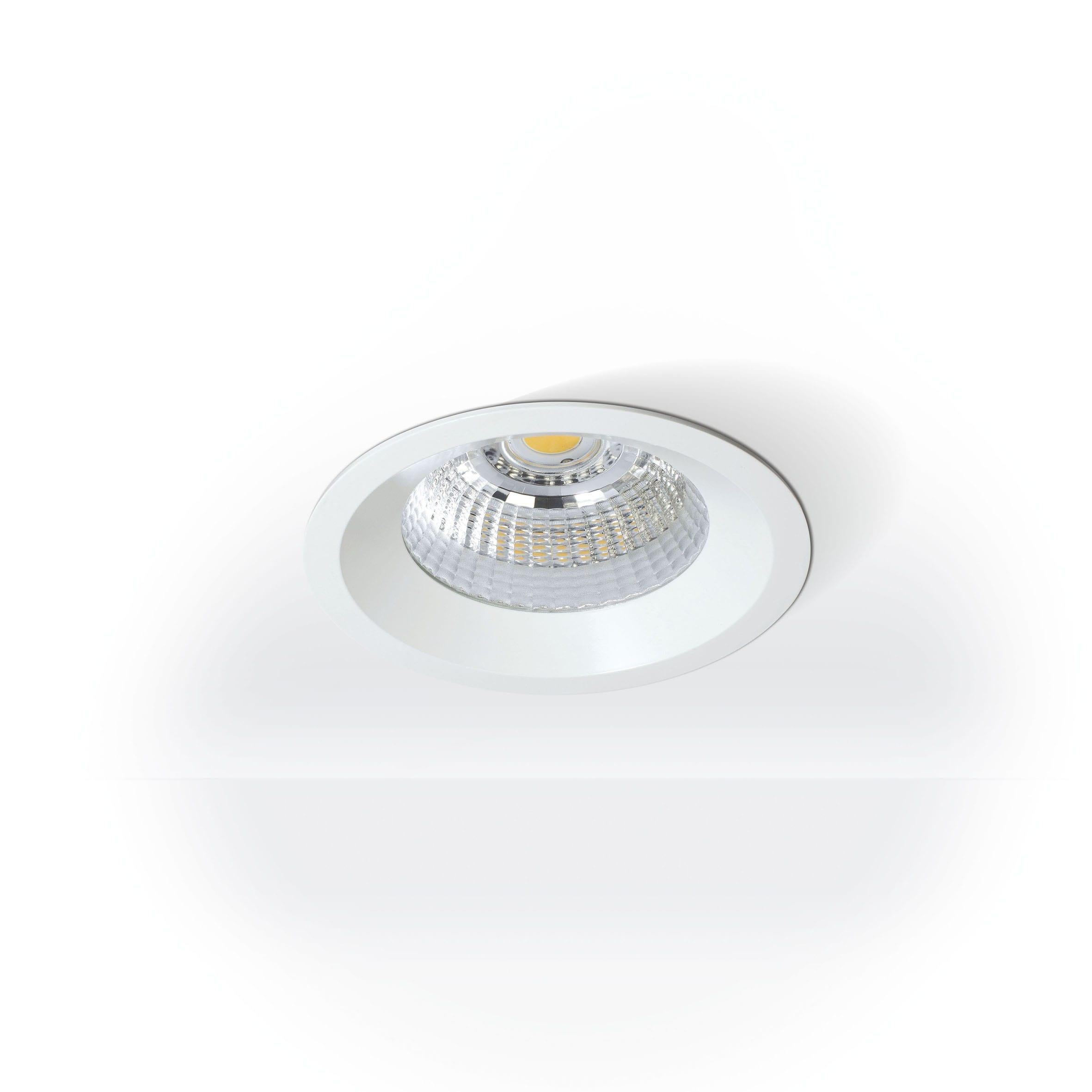 Projecteur encastré fixe LED en aluminium moulé sous pression thermolaqué en revêtu par poudre blanc fine matte. LED technologie innovante avec un flux lumineux sortant de 3926 lm pour 35 W, en température de couleur 3000 K. Réflecteur à facettes en aluminium, avec verre de protection. Système optique en retrait pour optimiser l’anti-éblouissement. Caractéristique de rayonnement : un faisceau ’flood’ en 40°. Projecteur complet incluant réflecteur et convertisseur inclus. Indice de rendu des couleurs (IRC) > 90, Évaluation intégrée de l’éblouissement (UGR) < 22. Durée de vie nominale > 60.000 h [selon le décret de l’UE]. Indice de protection IP44, classe de protection I, Le bouclage sur demande, source lumineuse remplaçable par le fabricant, dispositif de commande remplaçable par un professionnel autorisé, Dimensions : DMxH : 138x105 mm, Découpe DMxH : 125x120 mm, Poids : 0,8 kg