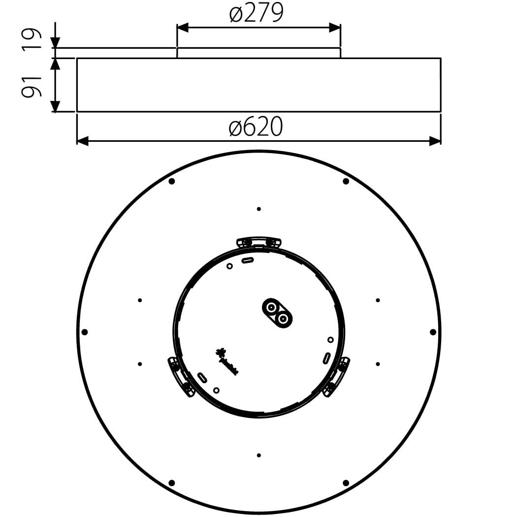 Luminaire LED de grande qualité avec boîtier de luminaire rondé au design plat en aluminium extrudé avec surface thermolaquée avec boîtier en revêtu par poudre RAL9016 blanc fine matte et anneau décoratif 'capital copper' pour montage mural. Installation par fixation murale incl.. Diffuseur en PMMA satiné pour un éclairage homogène. Raccordement électrique par 5 pôles utilisés, Luminaire équipé d’une technologie LED innovante avec une efficacité de 113 lm par W et une flux lumineux sortant de 5740 lm lm pour 51 W, en température de couleur 4000 K. Nombre d'adresses DALI : 1. Convertisseur DALI pour gradation, Evaluation de l'éblouissement selon la classification selon DIN EN 12464-1.2021-11 avec UGR < 22, ’Melanopic Ratio’ = (0,739), Indice de rendu des couleurs (IRC) > 90, tolérance chromatique étroite MacAdam 3, Groupe de risque RG0 selon norme IEC 62471, durée de vie nominale > 60.000 h [selon le décret de l’UE], classe énergétique (EEI). Indice de protection IP50, résistance aux chocs IK07 selon norme IEC 62262:2012, classe de protection I. Sur demande, également en version éclairage de secours avec batterie de 3h ou dans la version avec capteur de mouvement et de luminosité contrôlable/programmable, Casambi également sur demande. Des télécommandes sont disponibles comme accessoires. L’éclairage d’urgence et le capteur ne peuvent pas être combinés. Option de commutateur : C, source lumineuse remplaçable par le fabricant, dispositif de commande remplaçable par un professionnel autorisé, Dimensions DMxH : 0620x091 mm, hauteur totale du boîtier de 110 mm, déport du mur (profondeur) = 19 mm, poids : 5,1 kg
