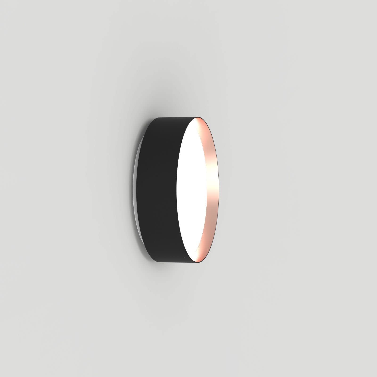 Luminaire LED de grande qualité avec boîtier de luminaire rondé au design plat en aluminium extrudé avec surface thermolaquée avec boîtier en revêtu par poudre RAL9005 noir fine matte et anneau décoratif 'capital copper' pour montage mural. Installation par fixation murale incl.. Diffuseur en PMMA satiné pour un éclairage homogène. Raccordement électrique par 5 pôles utilisés, Luminaire équipé d’une technologie LED innovante avec une efficacité de 81 lm par W et une flux lumineux sortant de 1500 lm lm pour 18,5 W, en température de couleur 3000 K. Nombre d'adresses DALI : 1. Convertisseur DALI pour gradation, Evaluation de l'éblouissement selon la classification selon DIN EN 12464-1.2021-11 avec UGR < 22, ’Melanopic Ratio’ = (0,57), Indice de rendu des couleurs (IRC) > 90, tolérance chromatique étroite MacAdam 3, Groupe de risque RG0 selon norme IEC 62471, durée de vie nominale > 60.000 h [selon le décret de l’UE], classe énergétique (EEI). Indice de protection IP50, résistance aux chocs IK07 selon norme IEC 62262:2012, classe de protection I. Sur demande, également en version éclairage de secours avec batterie de 3h ou dans la version avec capteur de mouvement et de luminosité contrôlable/programmable, Casambi également sur demande. Des télécommandes sont disponibles comme accessoires. L’éclairage d’urgence et le capteur ne peuvent pas être combinés. Option de commutateur : C, source lumineuse remplaçable par le fabricant, dispositif de commande remplaçable par un professionnel autorisé, Dimensions DMxH : 0330x091 mm, hauteur totale du boîtier de 110 mm, déport du mur (profondeur) = 19 mm, poids : 2,3 kg