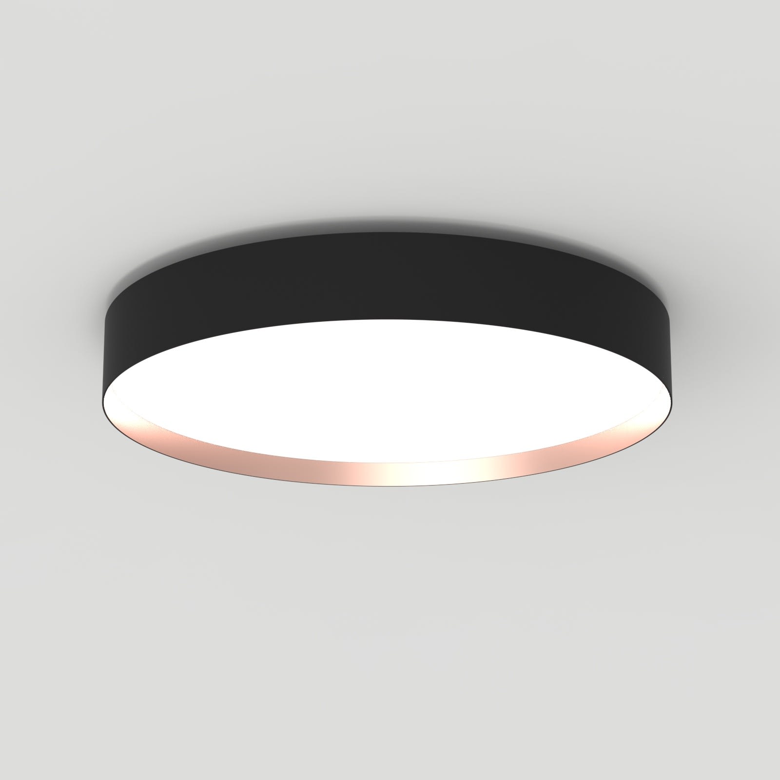 Luminaire LED de grande qualité avec boîtier de luminaire rondé au design plat en aluminium extrudé avec surface thermolaquée avec boîtier en revêtu par poudre RAL9005 noir fine matte et anneau décoratif 'capital copper' pour montage en saillie. Installation par le matériel de montage fourni sur CLICK&PLAY-canopée.. Diffuseur en PMMA satiné pour un éclairage homogène. Raccordement électrique par 5 pôles utilisés, Luminaire équipé d’une technologie LED innovante avec une efficacité de 107 lm par W et une flux lumineux sortant de 5481 lm lm pour 51 W, en température de couleur 4000 K. Nombre d'adresses DALI : 1. Convertisseur DALI pour gradation, Evaluation de l'éblouissement selon la classification selon DIN EN 12464-1.2021-11 avec UGR < 22, ’Melanopic Ratio’ = (0,739), Indice de rendu des couleurs (IRC) > 90, tolérance chromatique étroite MacAdam 3, Groupe de risque RG0 selon norme IEC 62471, durée de vie nominale > 60.000 h [selon le décret de l’UE], classe énergétique (EEI). Indice de protection IP50, résistance aux chocs IK07 selon norme IEC 62262:2012, classe de protection I. Sur demande, également en version éclairage de secours avec batterie de 3h ou dans la version avec capteur de mouvement et de luminosité contrôlable/programmable, Casambi également sur demande. Des télécommandes sont disponibles comme accessoires. L’éclairage d’urgence et le capteur ne peuvent pas être combinés. Option de commutateur : C, source lumineuse remplaçable par le fabricant, dispositif de commande remplaçable par un professionnel autorisé, Dimensions DMxH : 0620x091 mm, hauteur totale du boîtier de 110 mm, joint creux de 19 mm, poids : 5,1 kg